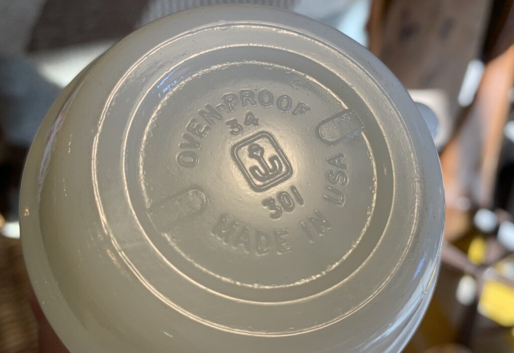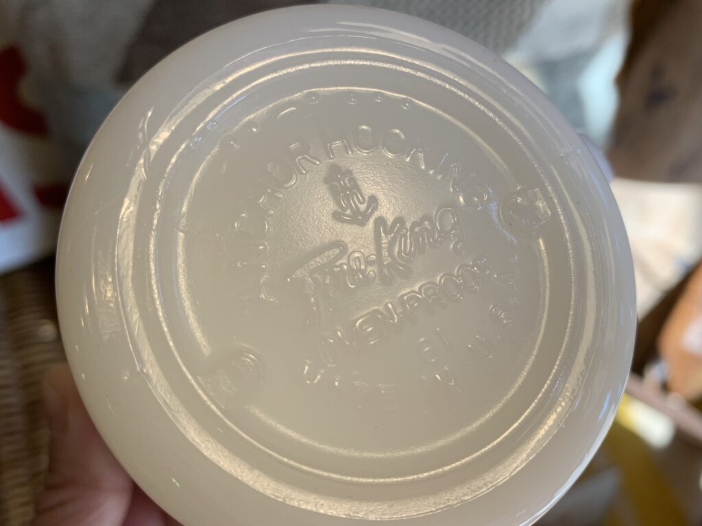 その後、60年代にはファイヤーキングブランドの親会社「アンカーホッキング」の社名と会社のロゴマークが加わります。