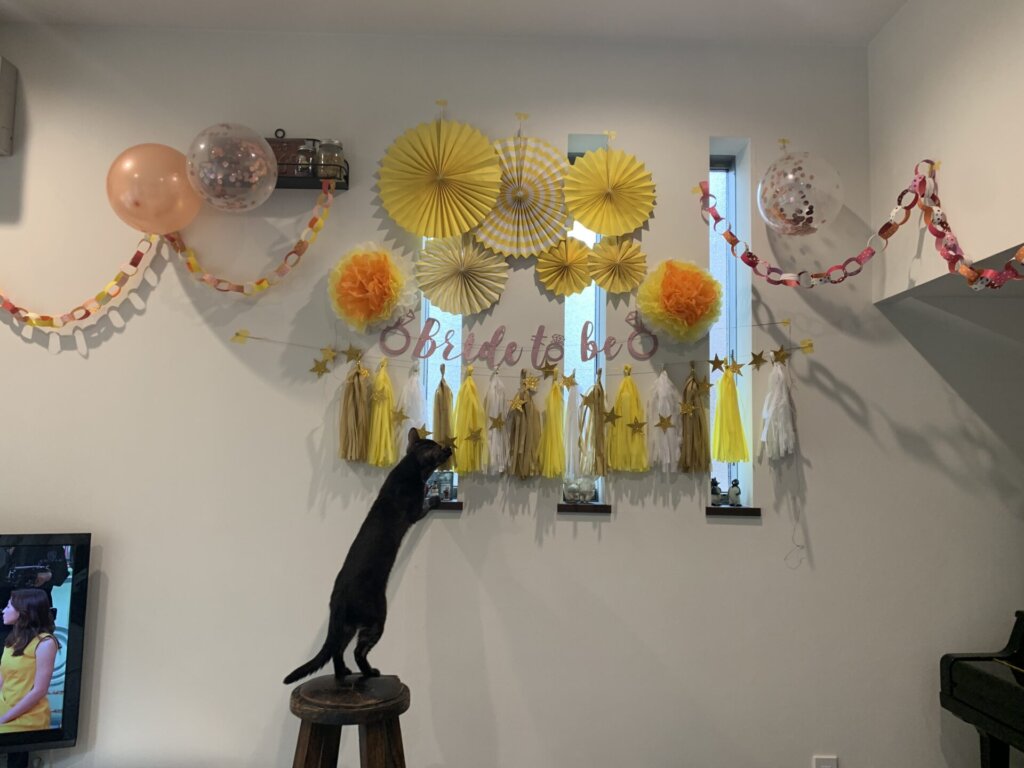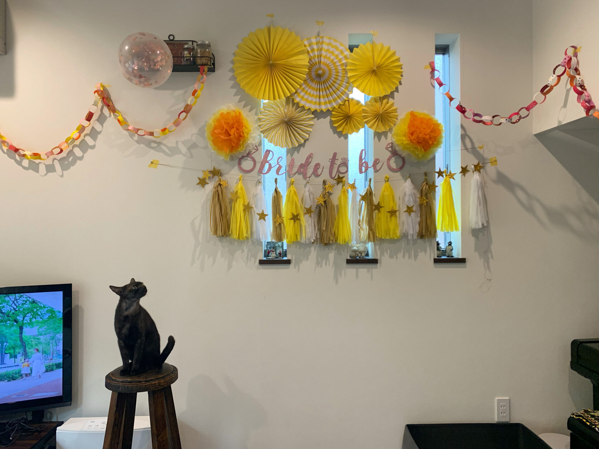 猫が興奮するためあまり沢山は飾れませんでしたが、フォトスポットにしよう!と壁の一面だけ賑やかにしましたよ〜
