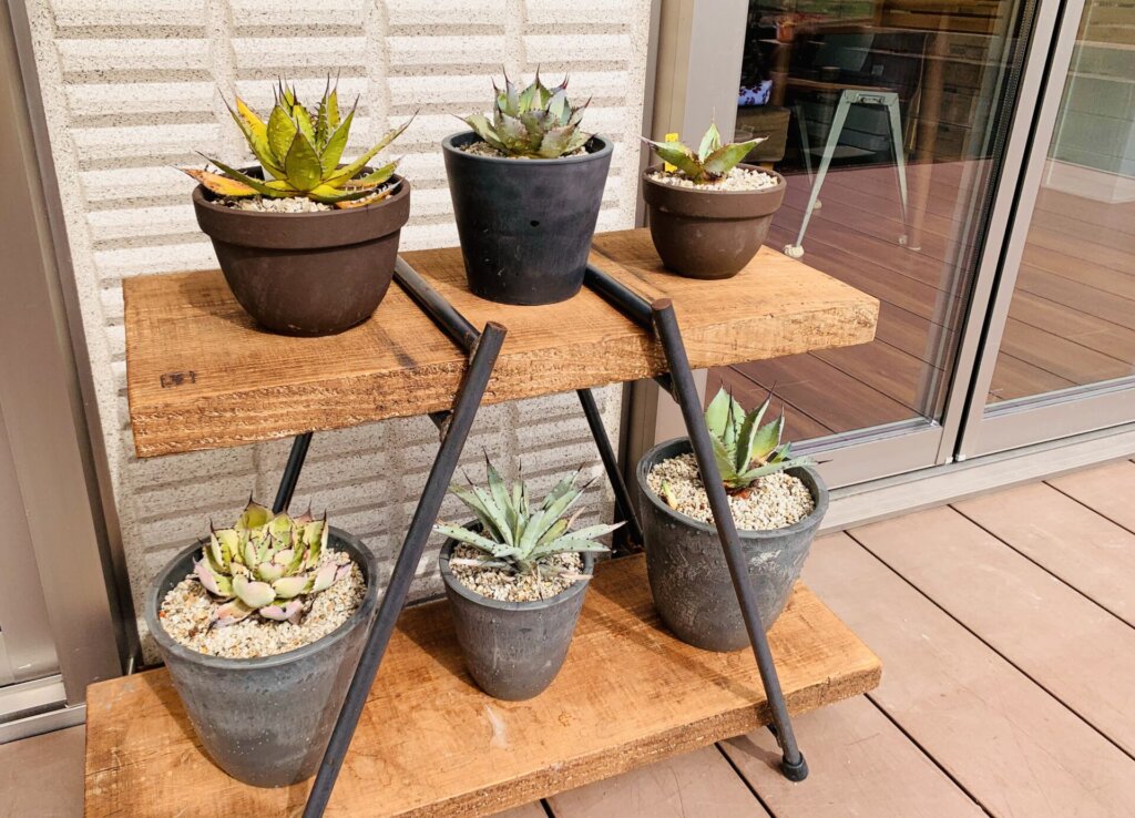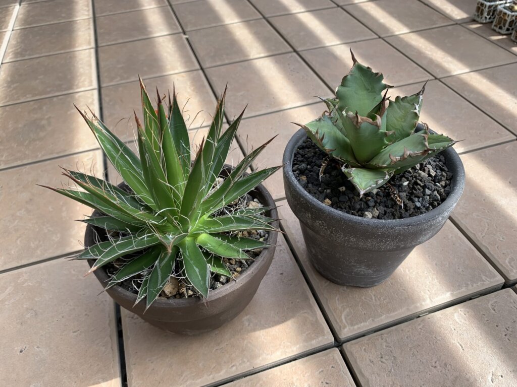 アガベは愛知県の冬の寒さに耐えられないため、冬場はベランダにある簡易温室(ビニールハウス)で養生して、暖かくなったら外に出しています。