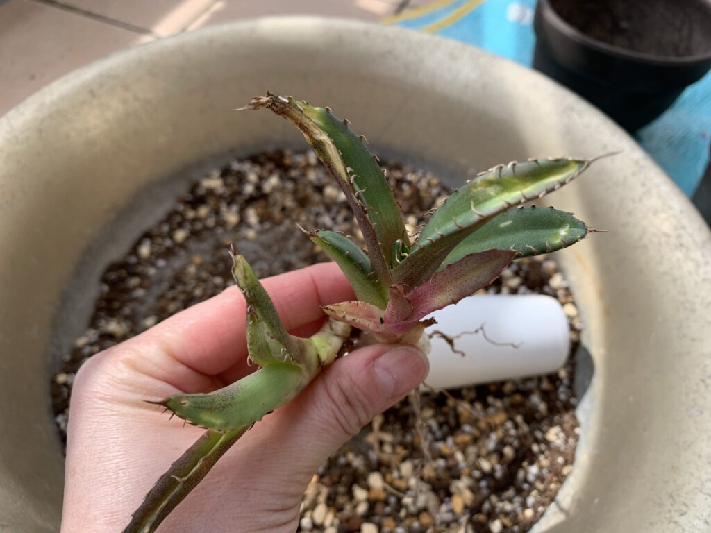 アガベは子株が生まれやすい品種も多いため、ある程度成長したらこのように親株から外します。