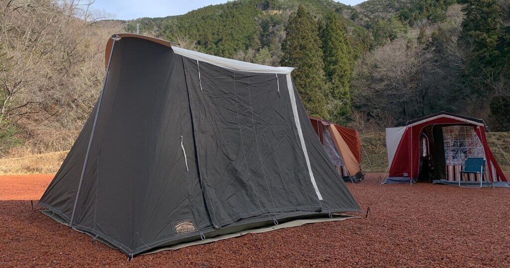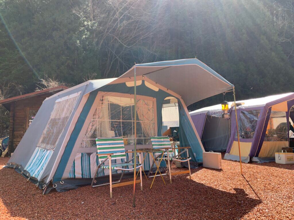 「鉄骨テントでするキャンプ最高」