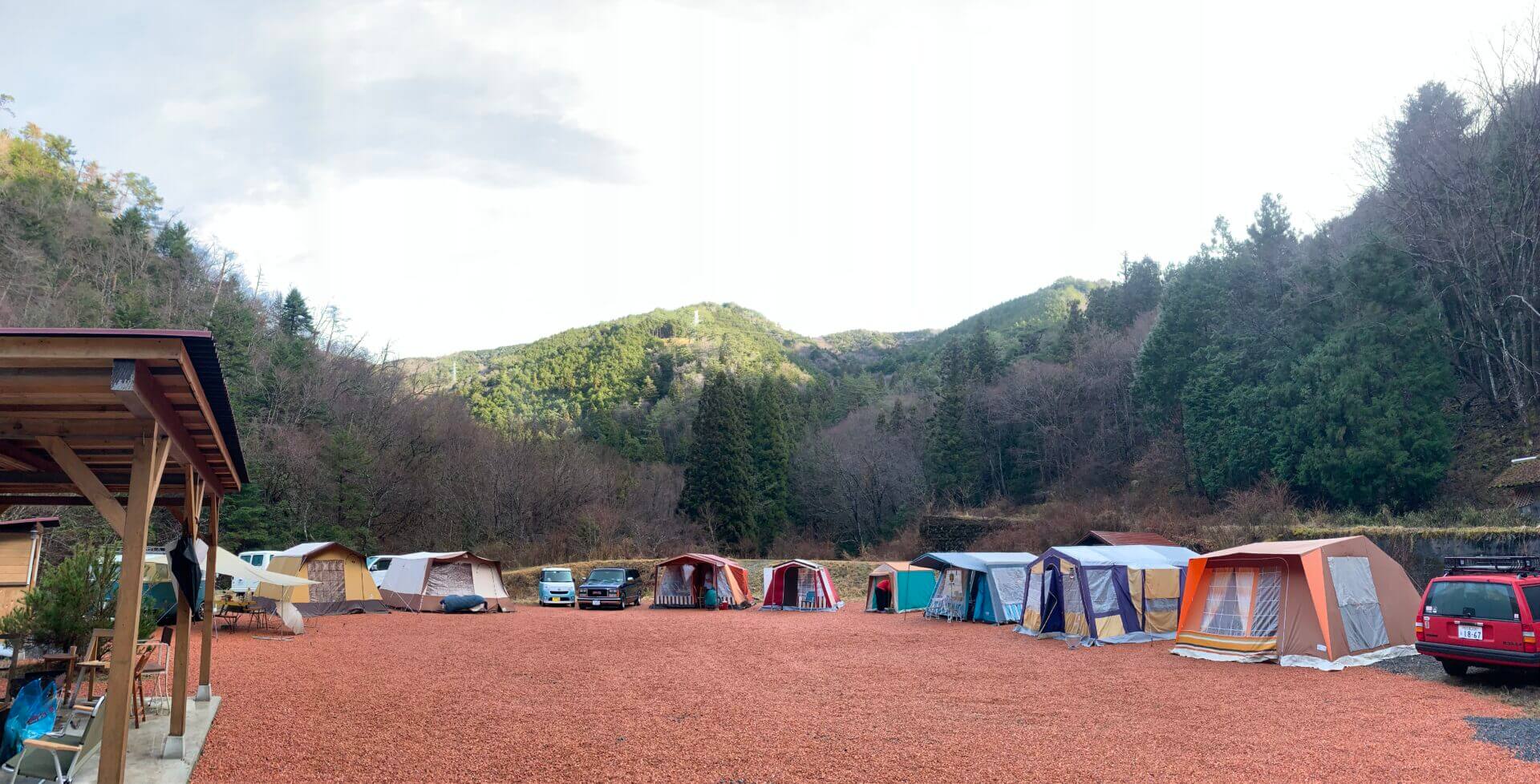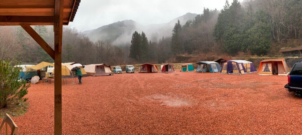 大々的にタイトルに名前を入れられてしまい恐縮ですが、私をもっとキャンプ沼にハメようと画策する(?)ビンテージキャンプ沼の住人の方々が、各々の鉄骨テントやビンテージギア、ヨダレ物の愛車を引っさげて、岐阜県下呂市にある「奥ノ田ヒルズ」さんに集結しました。
