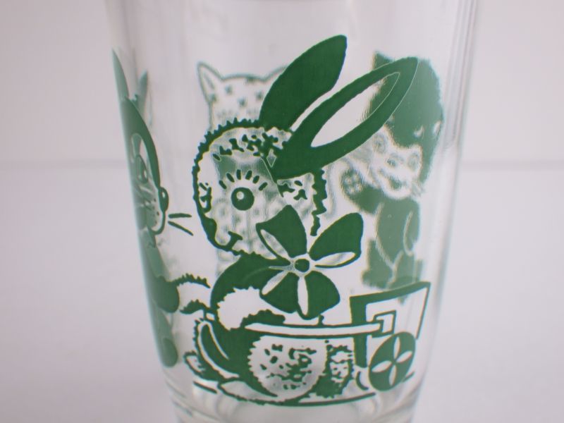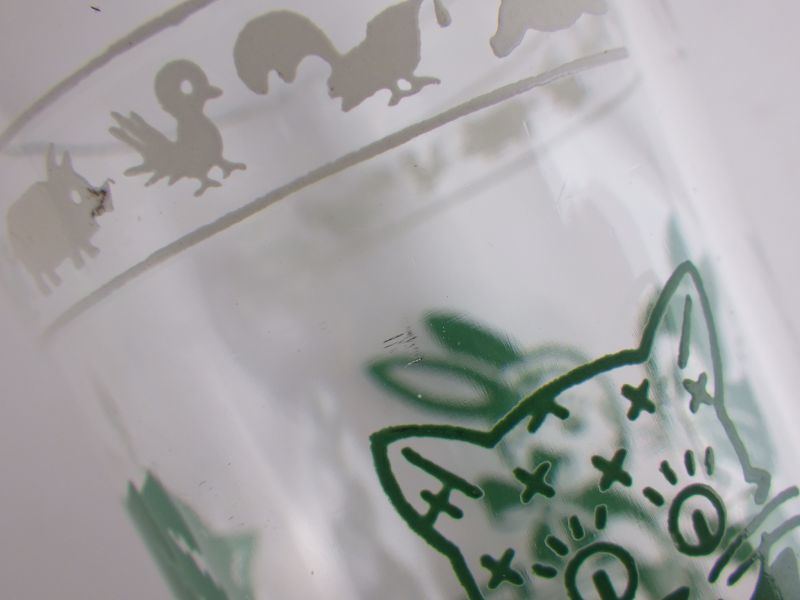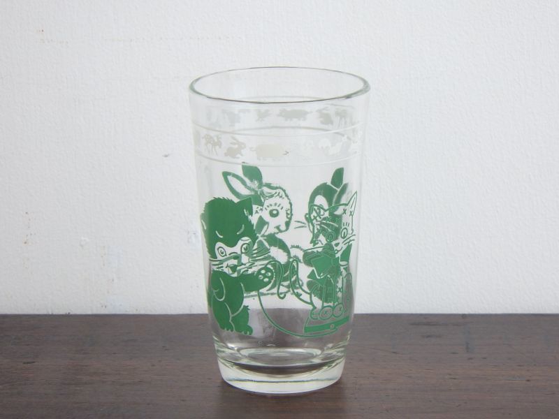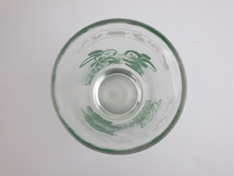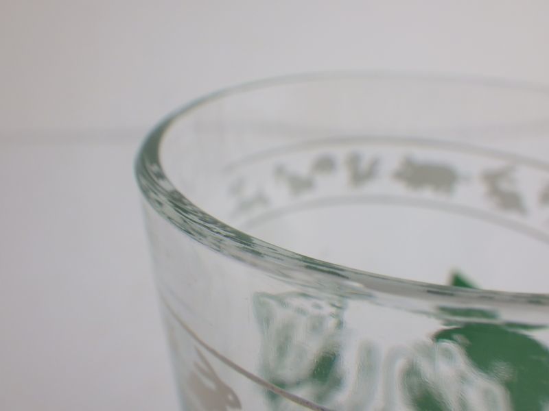 | クラフト社のチーズ販売容器として作られました。 容量は120mlで小さめのグラスです。 レトロな動物柄が可愛らしく、コレクターさんに人気のシリーズです。グラスとして使用していただく他、飾って眺めても楽しめると思います。 |