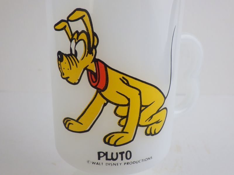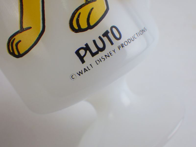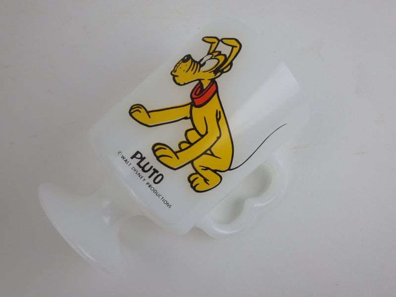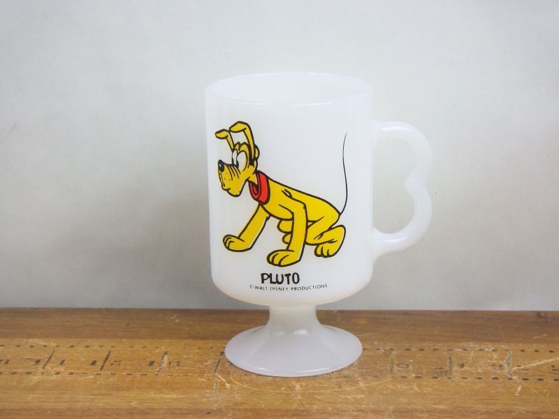 | フェデラル・グラス社のプルートのフッテッドマグです。 持ち手の形がユニークで可愛らしいアイテムです。 当時のディズニー公式ショップで販売されていたマグの多くが、フェデラルで製造されていました。 |