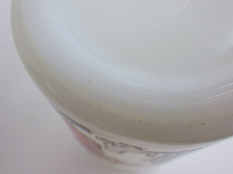 | 製造時からのプリントのにじみがあります。 文字部分に僅かなロスがみられますが、その他は目立ったロスも無く、艶も有り綺麗です。 不明な点や追加画像の必要な場合は、お気軽にお問い合わせください。 |