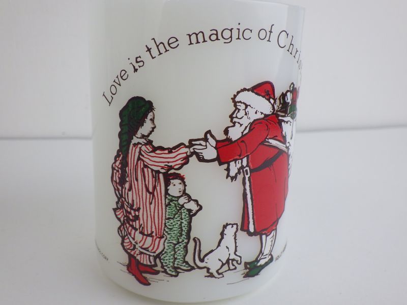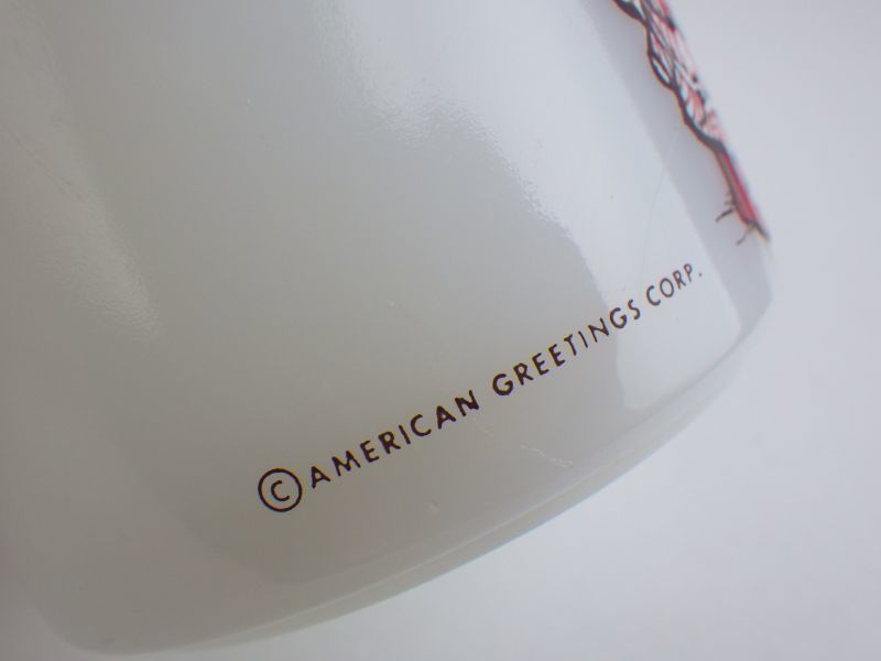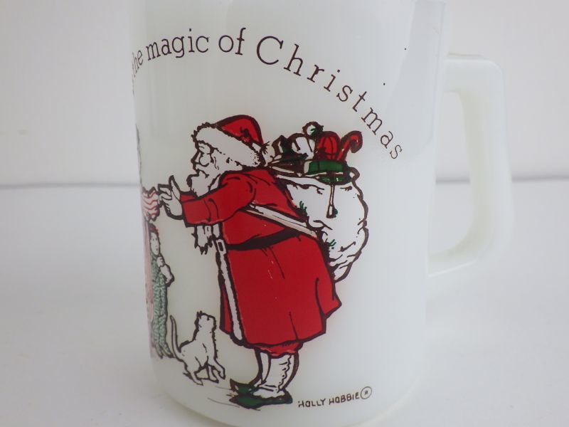| 1970年代にアメリカン・グリーティング社がキャラクター化し、数多くのグッズが作られた、「ホリーホビー」のマグです。 サンタクロースバージョンは珍しいアイテムです。 |