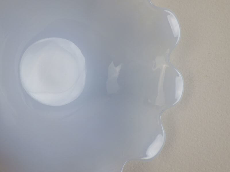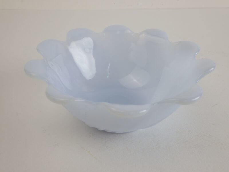 | 花が咲いたようなとても可愛いボウルです。 他にもアイボリー、ピーチラスターにプレートがついたデザートセットがありますが、アズライトは、ボウルのみになります。 |