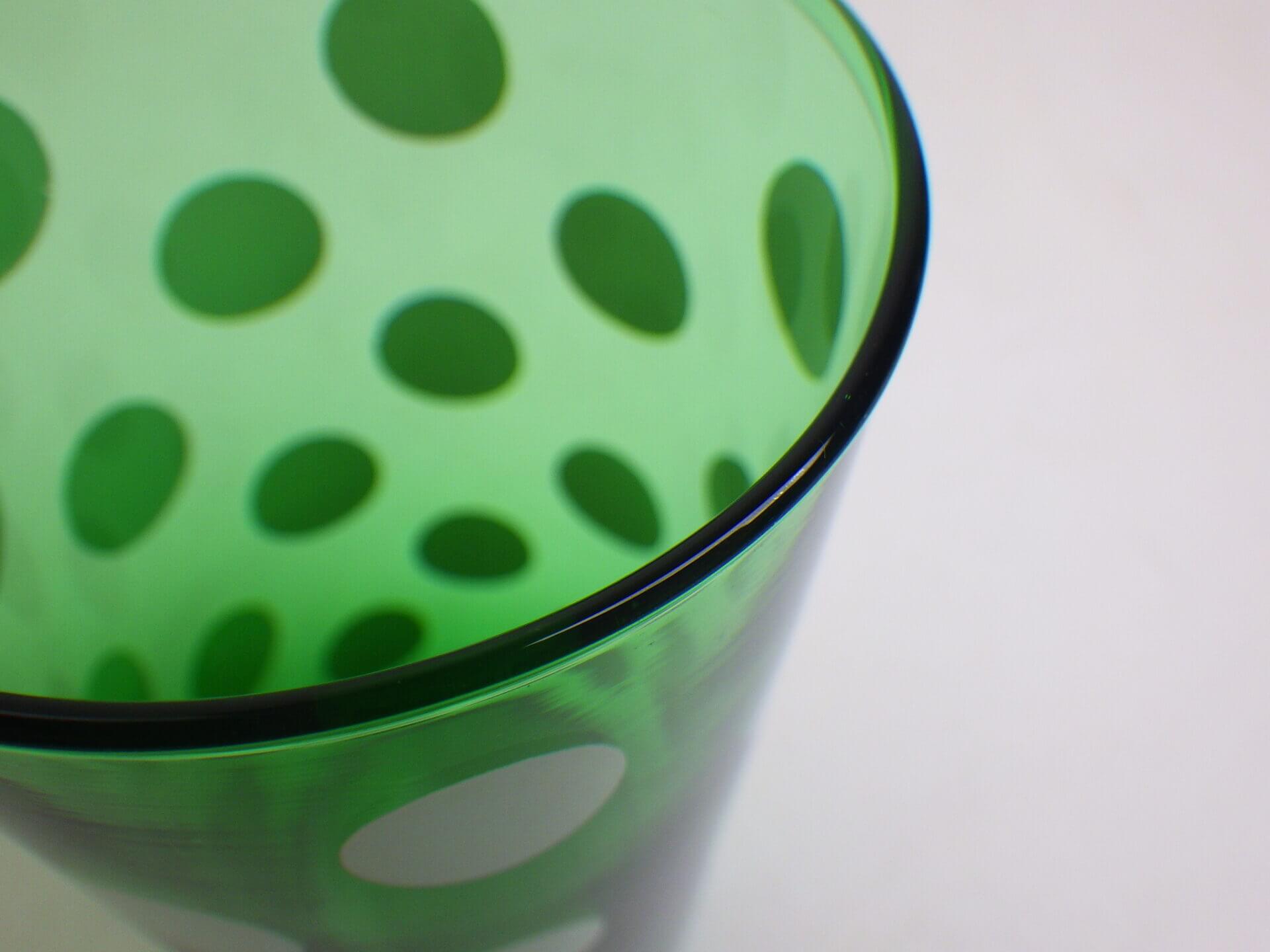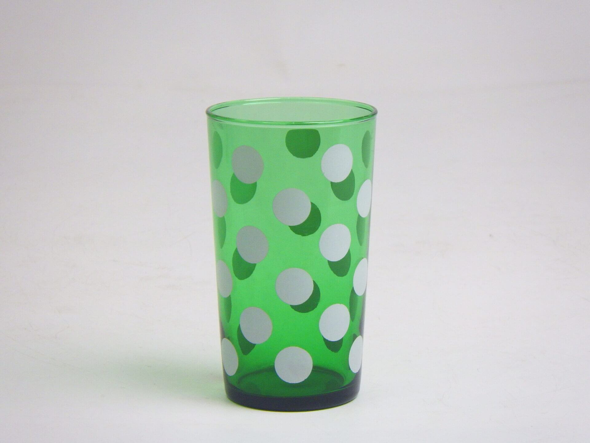 | ファイヤーキングでお馴染みの「アンカーホッキング社」製のガラスのタンブラーです。 深いグリーンが美しいこちらは、フォレストグリーンのホワイトドットシリーズです。 |