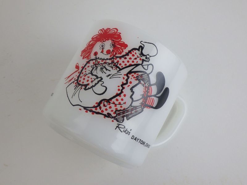 | アメリカのオハイオ州のデパート、「RIKE'S(Rike Kumler Co)」のアドマグです。 アメリカの国民的キャラクター「ラガディ・アン&アンディ」のアンが両面にプリントされています。 こちらはあまり見かけないレアなマグですよ。 |