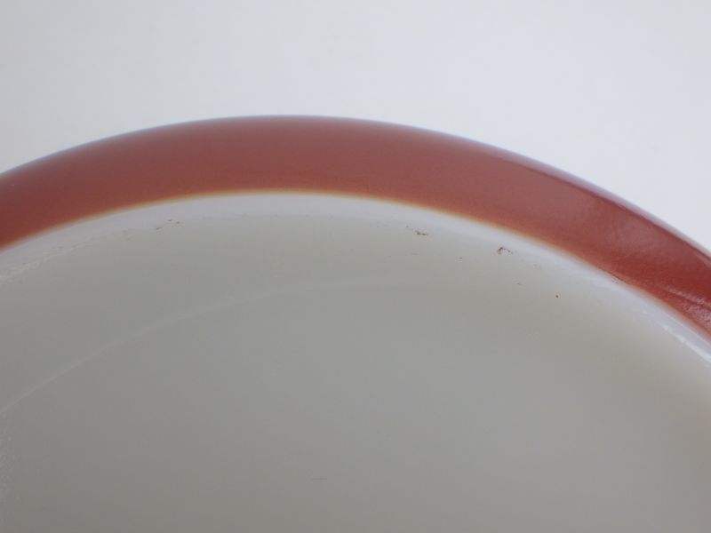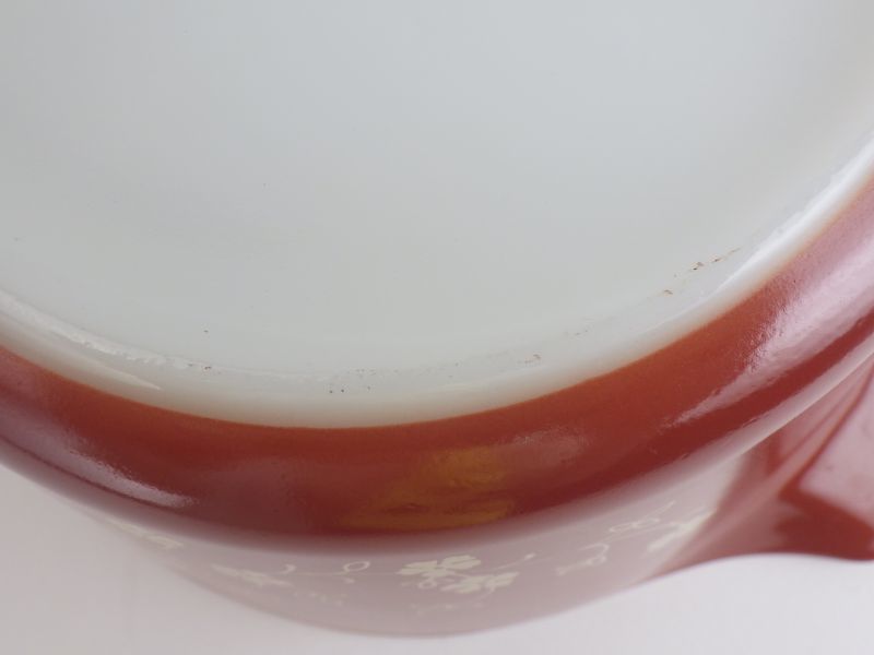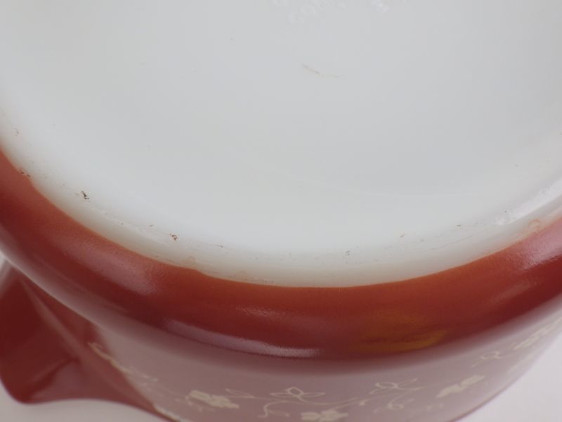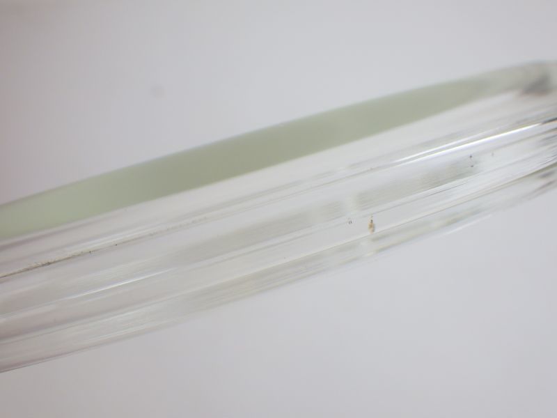 | condition | ワレや欠けなど無く艶もあり綺麗な状態です。 内側底面に薄いかきまぜ痕が見られます。 ボトム接地面に小さな着色がありますが気にならない程度です。 ガラス蓋にキズ等見られますが、ワレや欠けなどはありません。 |