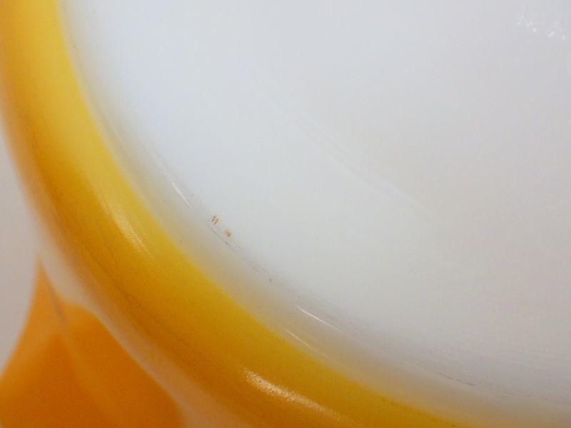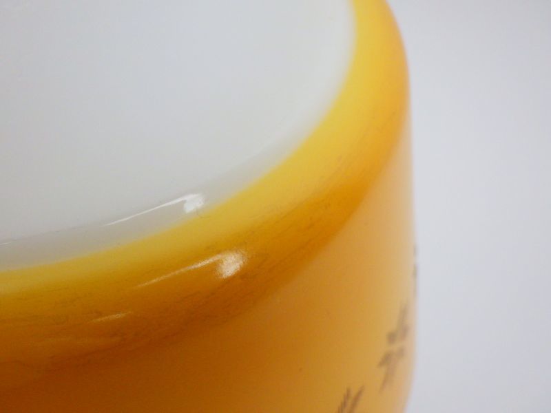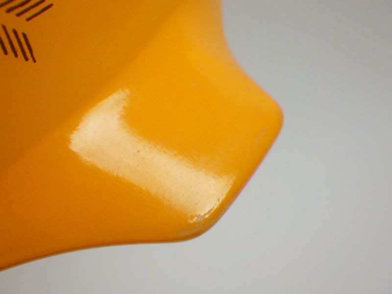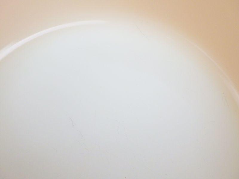 | condition | 内側底面に薄いかきまぜ痕が見られます。 ボトム接地面、ハンドル、側面にわずかな着色がありますが気にならない程度です。 ガラス蓋のハンドルにわずかなカケ、表面にキズ等ありますが、ご使用に問題のあるダメージはありません。 |
