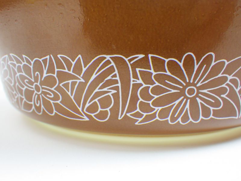 | 正式名称「シンデレラベイクサーブ&ストア」と言い、オーブン料理をそのまま食卓へ並べられる、便利でおしゃれなアイテムです。 「ウッドランド」は南国風の大ぶりな花と草が描かれています。 チョコレートブラウンに白いプリントが、落ち着いた雰囲気で、可愛らしいシリーズですね。 |