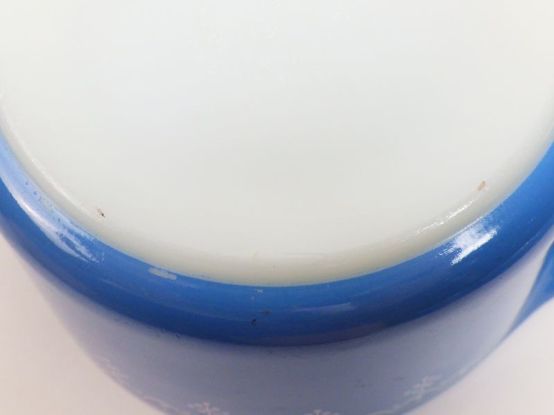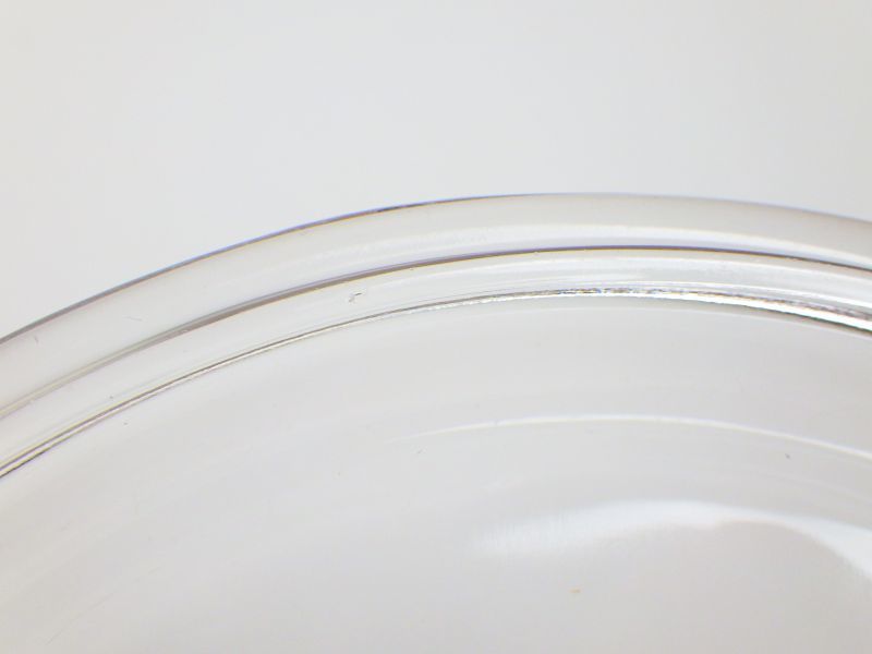 | condition | ワレや欠けなど無く艶もあり綺麗な状態です。 内側底面に薄いかきまぜ痕が見られます。 ボトム接地面、リム、側面にわずかな着色がありますが、気にならない程度です。 ガラス蓋に小キズ、製造時からのザラつき等ありますが、ワレやカケなどはありません。 |