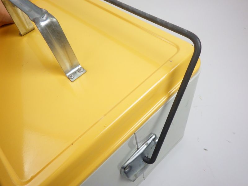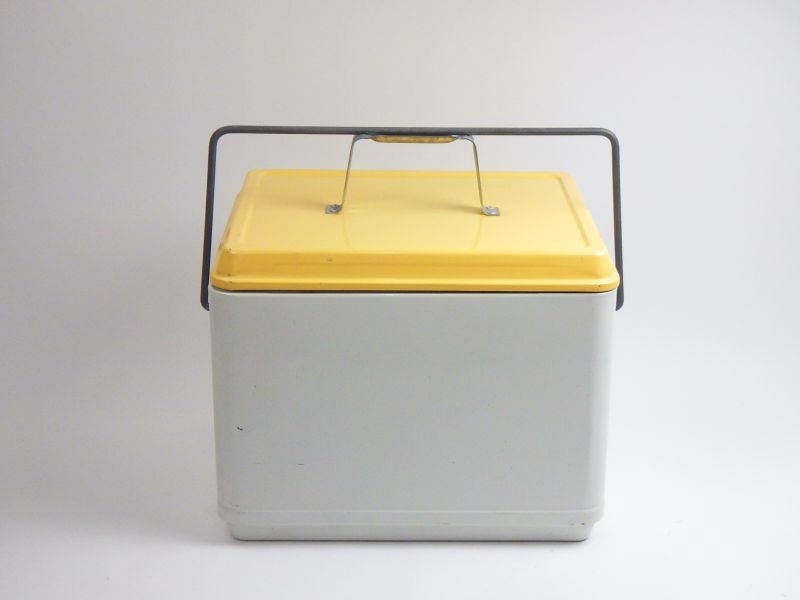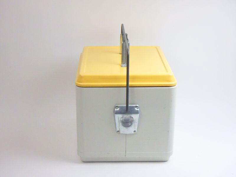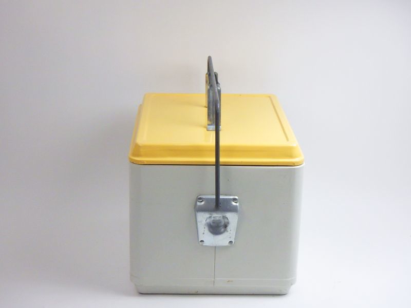 | アメリカで買い付けた、「ハミルトンスコッチ社」のメタルクーラーボックスです。 優しいクリーム色がアクセントになり、キャンプシーンを盛り上げてくれそうですね。 |