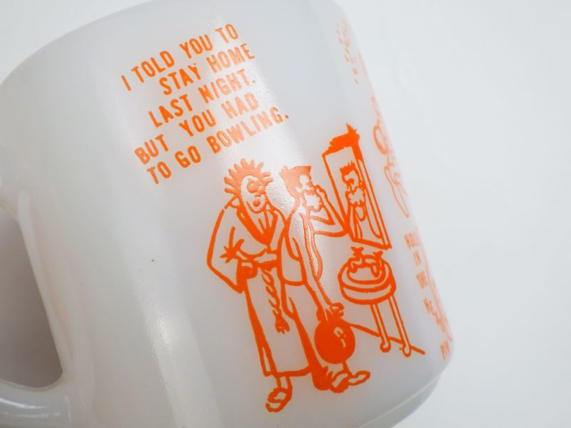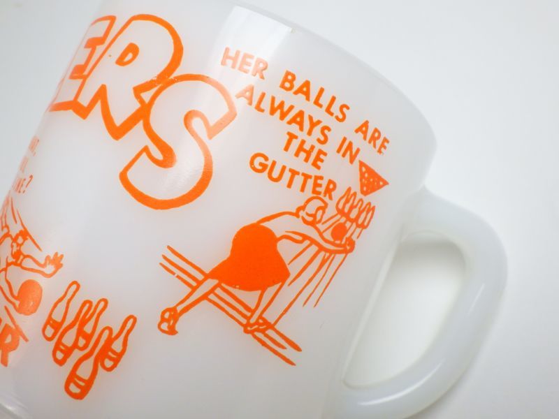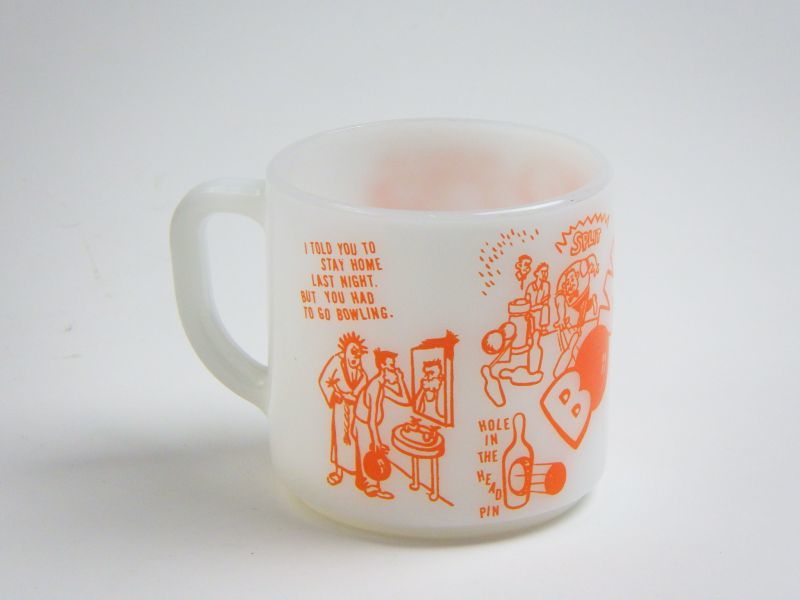 | ユニークなボーリングのイラストがプリントされたマグです。 単色のプリントですが、賑やかで可愛いですね! |