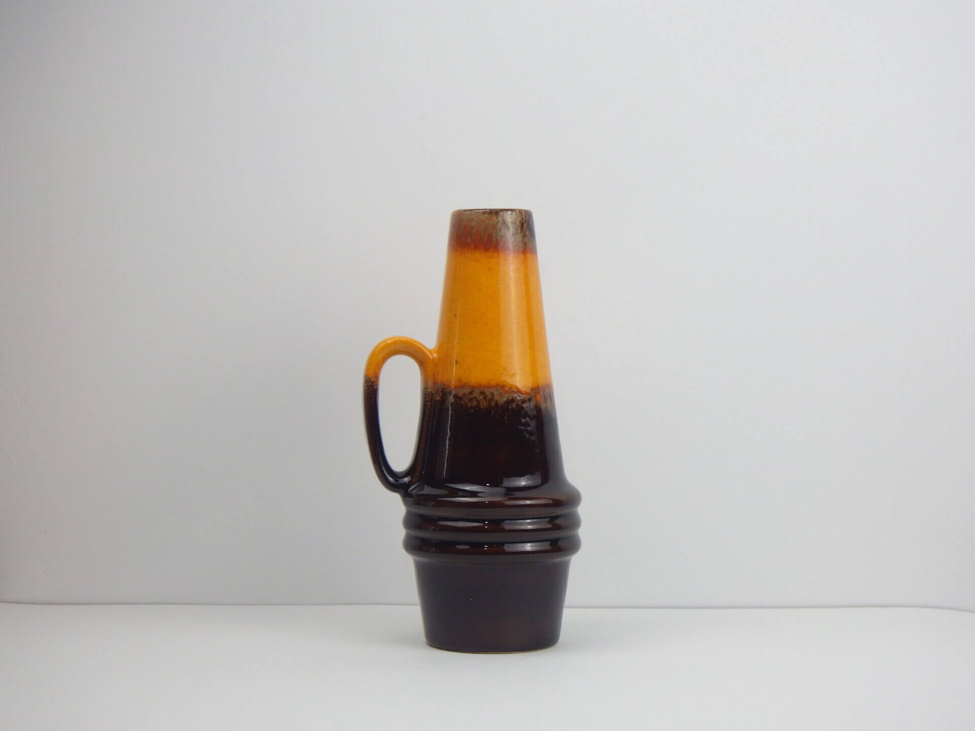 | 1950年~70年代に主に旧西ドイツで作られた「Fat Lava」と呼ばれるビンテージ花器です。 Fat Lavaは肥えた溶岩を意味し、流れ出る溶岩のような表情、色合い、ゴツゴツとした溶岩石のようなテクスチャーのものが多く存在します。 この時代のドイツ製陶器の多くは、職人による手作業で製作されていた為、全く同じものが他に存在しないところも魅力の一つかもしれません。 近年では日本でもコレクターズアイテムとして注目されています。 ミッドセンチュリー家具とも相性抜群ですね。 こちらはFat Lavaの中でも、種類やカラーが豊富で、70年代にドイツ国内で最大手に躍進したScheurich"製です。 |