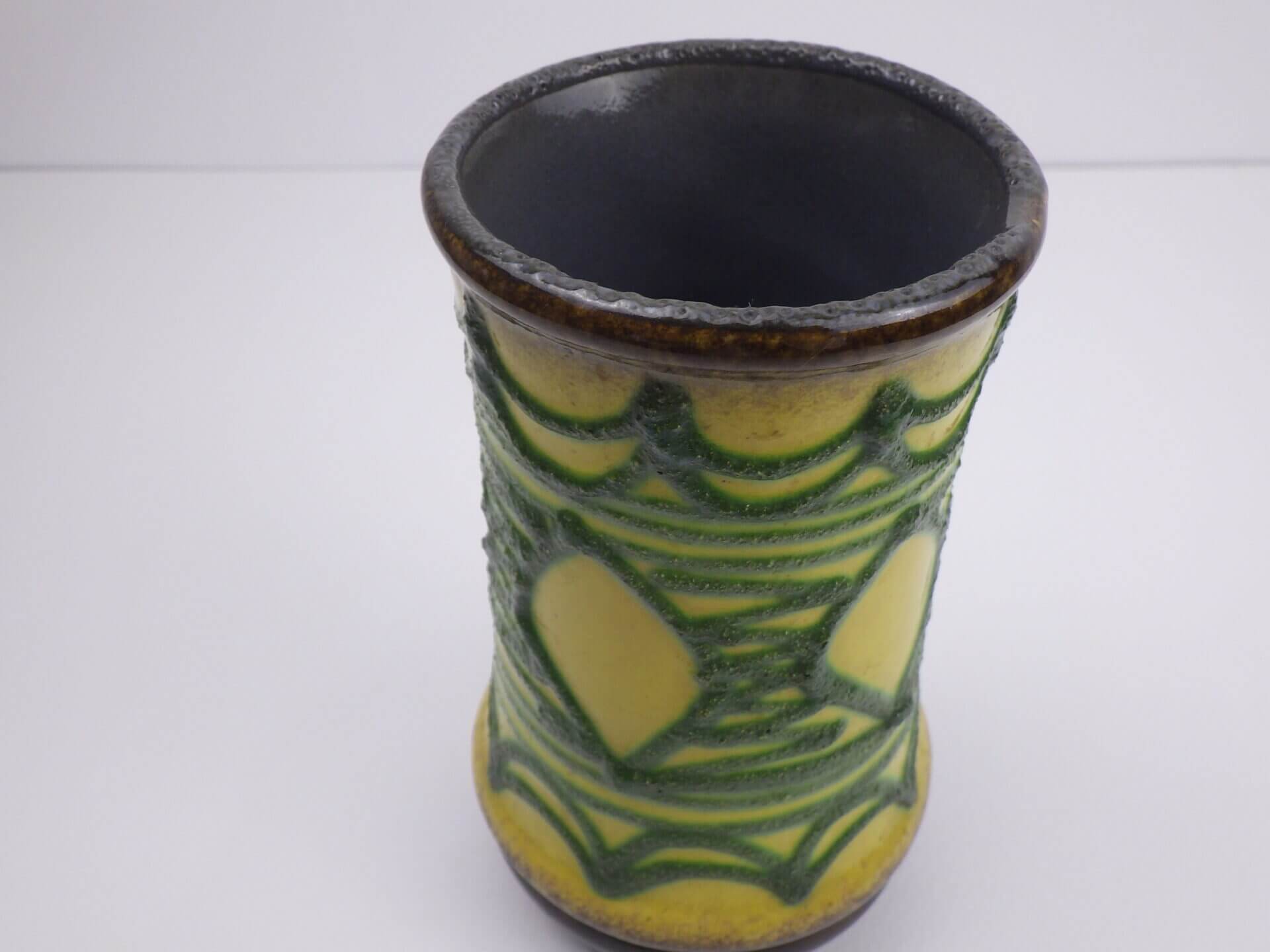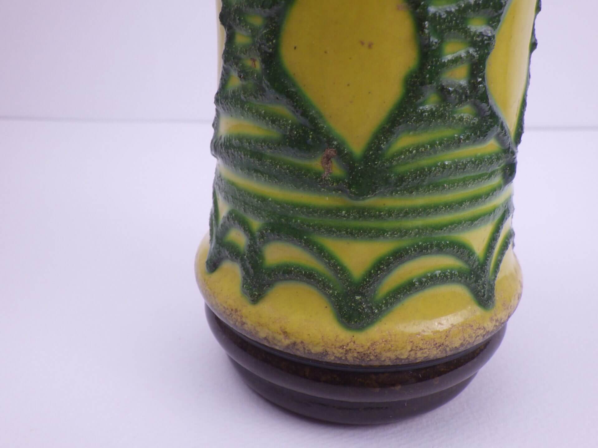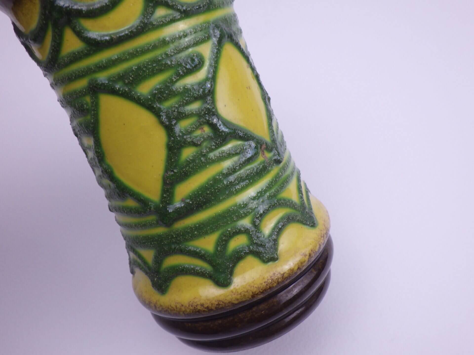 | 1960~70年代の東ドイツの国営企業、「Strehla Keramik」のFat Lava Vaseです。 西ドイツのファットラヴァに比べてドクドクしく、落ち着いた色味の物が多い印象。 こちらはめずらしく南米風な香りのするカラフルでポップなデザインの一品。 お部屋を明るい印象にしたい方におすすめです。 花を生けなくてもこれだけで絵になるアイテムですね。 |