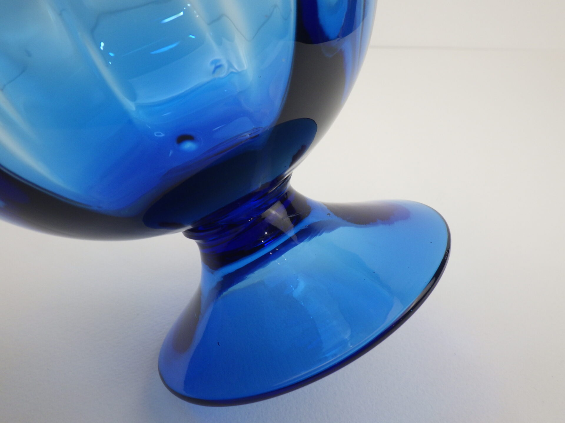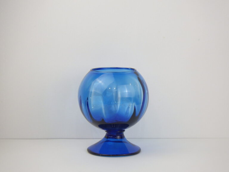 | アメリカで買い付けました。 ビンテージのガラスのフラワーベースです。 深いブルーカラーが美しい一品。 トップは内側に凹凸があるため、見る角度によって表情が変わります。 お花を生けて楽しむのはもちろんのこと、そのものを飾ってオブジェとして楽しんでいただけるアイテムです。 |