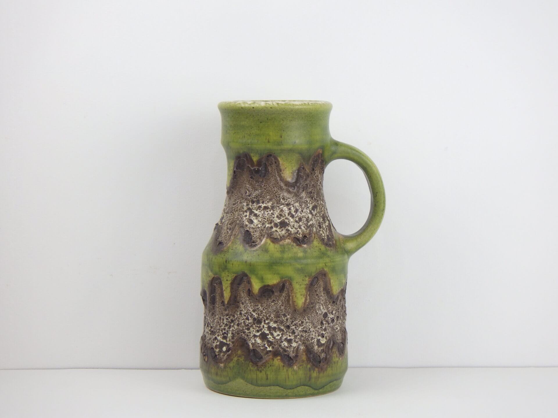 | 1883年に創業、1930年~80年代まで陶磁器メーカーとして牽引してきた「Dumler&Breiden」社製のフラワーベースです。 DとBを組み合わせた刻印が目印。 ゴツゴツした表面のテクスチャーはファットラバらしさがあり、且つグリーンの落ち着いた優しい色合いが、日本の住宅にも馴染みやすいため、おすすめのアイテムです。 |