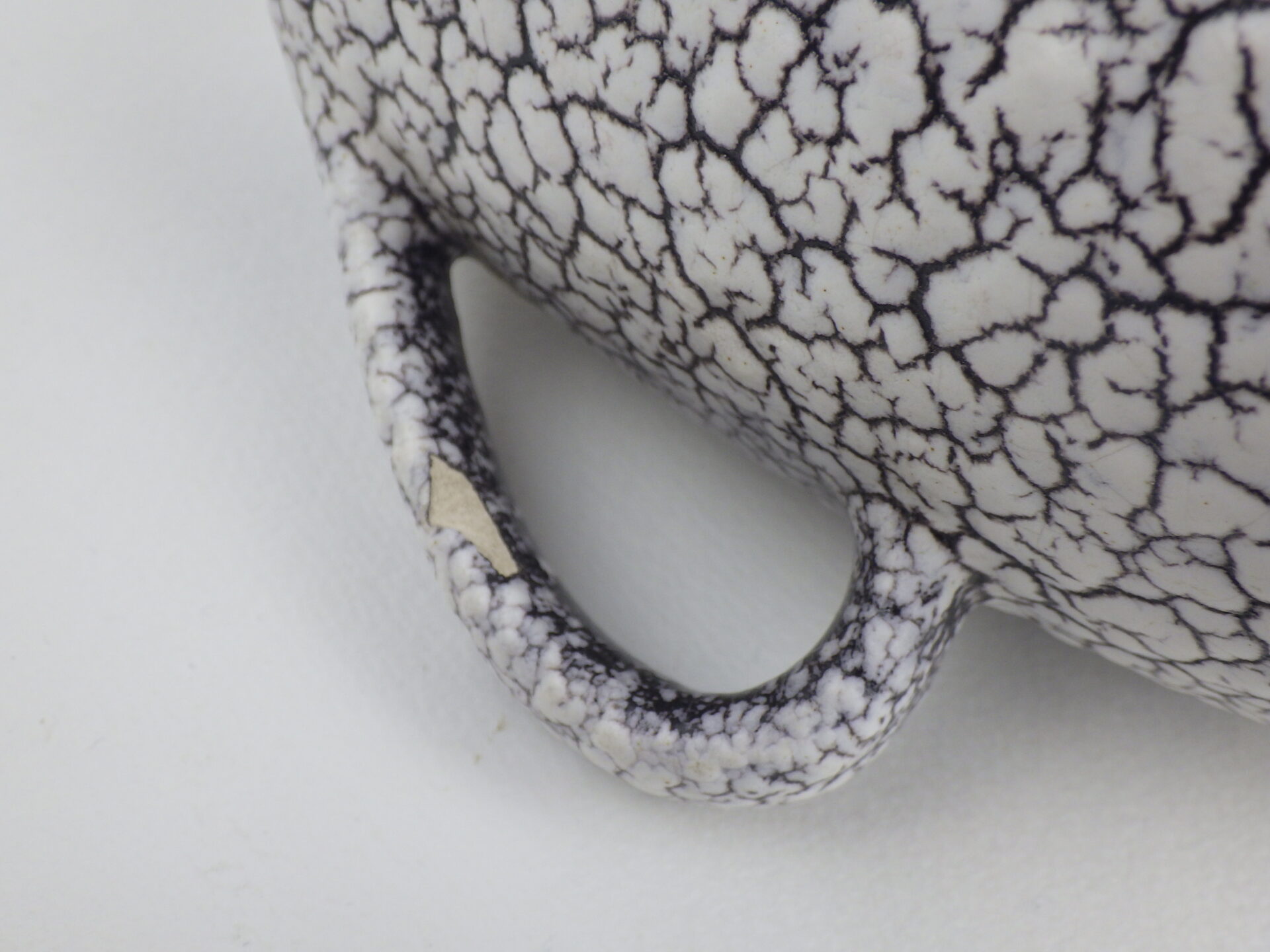 | ヨーロッパで買い付けました。 1848年創業「Jopeko Keramik(Johann Peter Korzilius)」のFat Lavaベースです。 ファットラヴァらしいごつごつとしたテクスチャーに、シンプルな三色のドットがあしらわれているデザインが目を引きます。 お花を飾って楽しむほか、そのものをオブジェとして飾っても絵になるデザインですね。 |