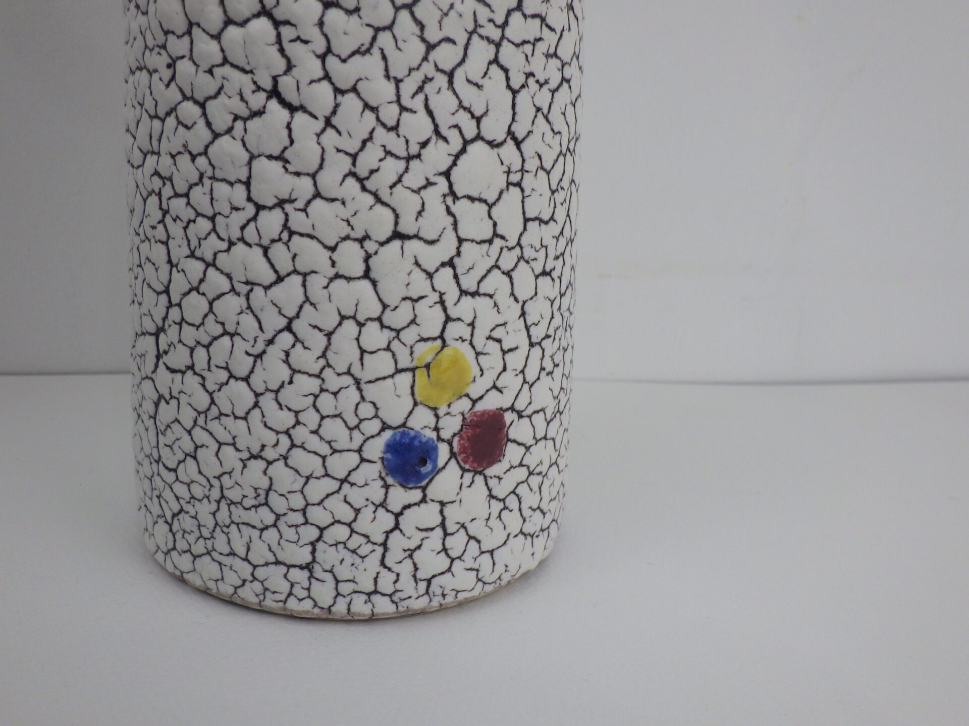 | ヨーロッパで買い付けました。 1848年創業「Jopeko Keramik(Johann Peter Korzilius)」のFat Lavaベースです。 ファットラヴァらしいごつごつとしたテクスチャーに、シンプルな三色のドットがあしらわれているデザインが目を引きます。 お花を飾って楽しむほか、そのものをオブジェとして飾っても絵になるデザインですね。 |