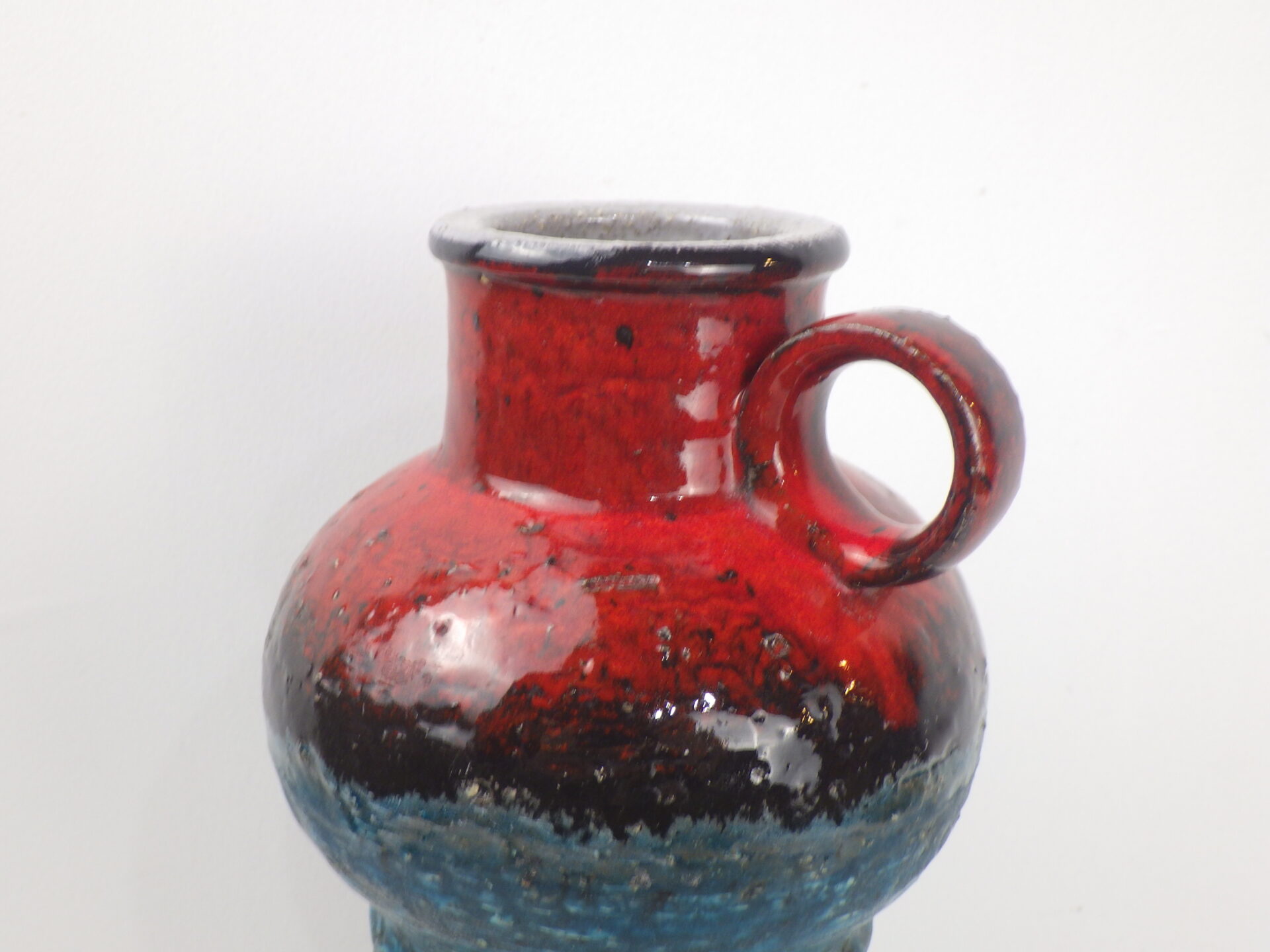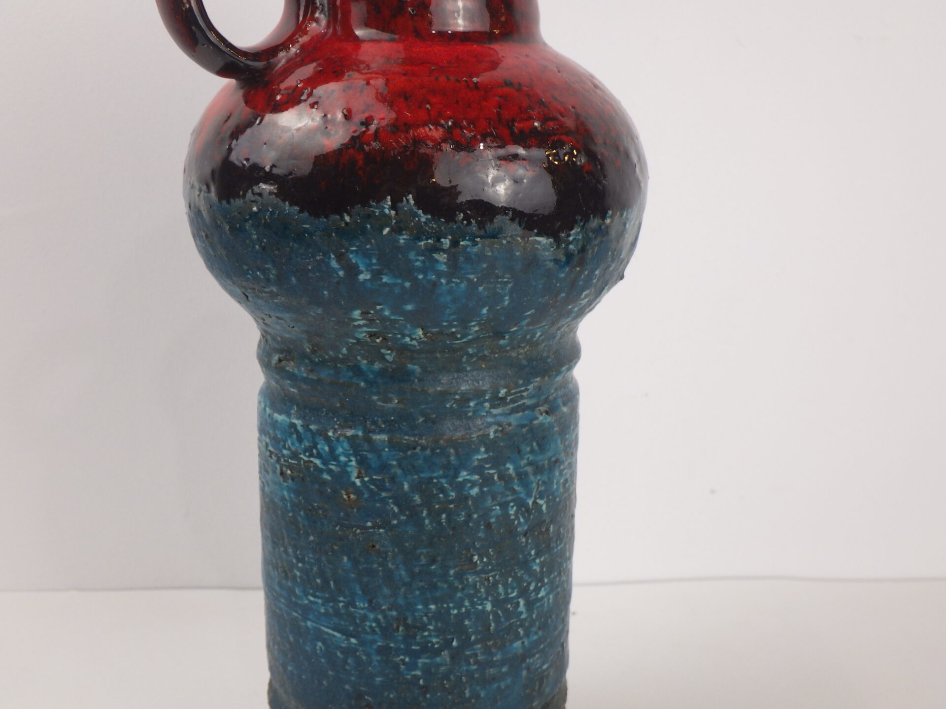 | ヨーロッパで買い付けました。 ジャーマン・アートポタリーと呼ばれるこの時代の陶器は、多くが職人による手作業で製作されており、同じシリーズでも一つとして同じ表情の物が存在しません。 こちらはファットラヴァらしいごつごつとしたテクスチャーが印象的な一品。 お花を飾って楽しむほか、そのものをオブジェとして飾っても絵になるデザインですね。 |