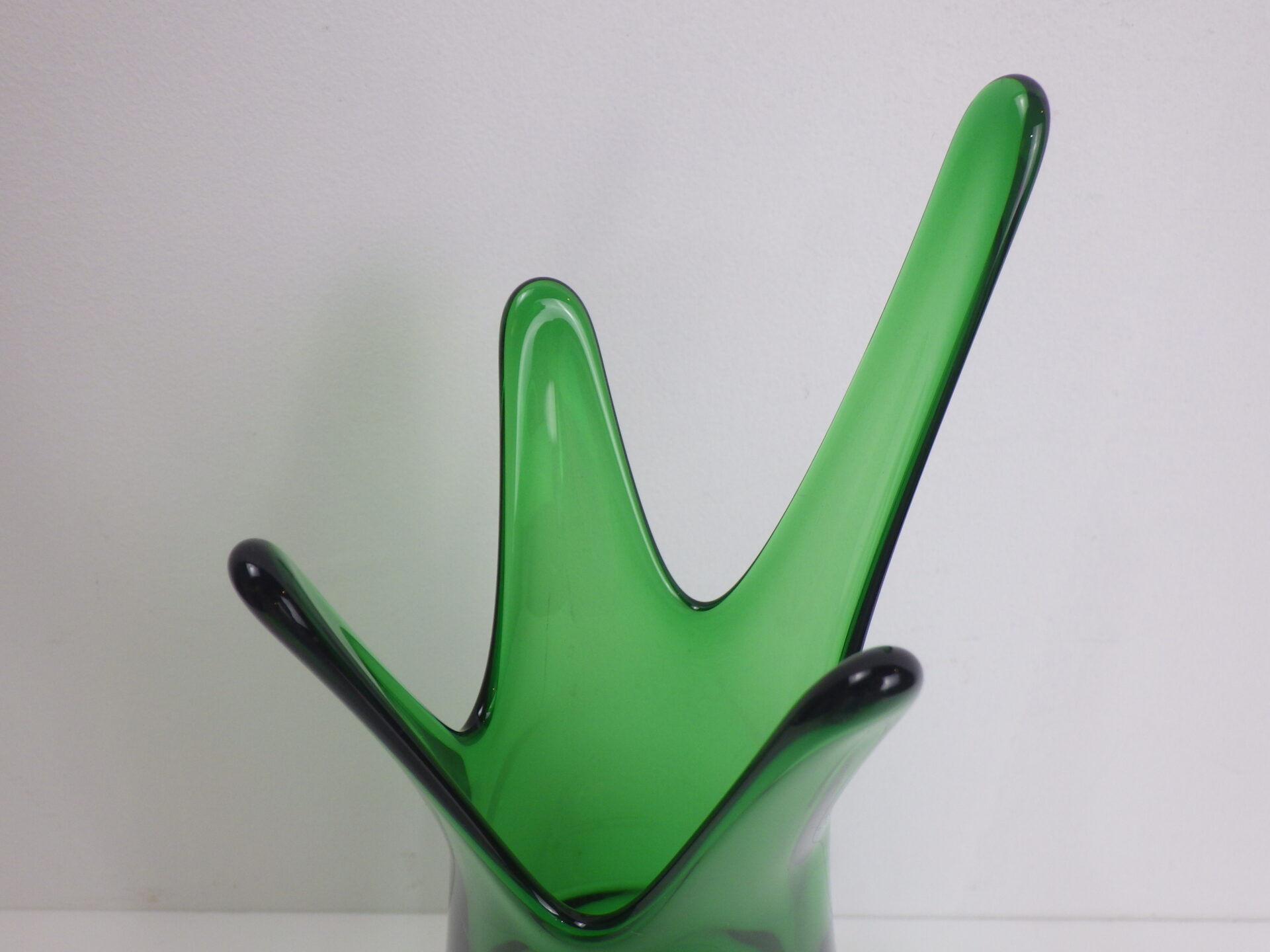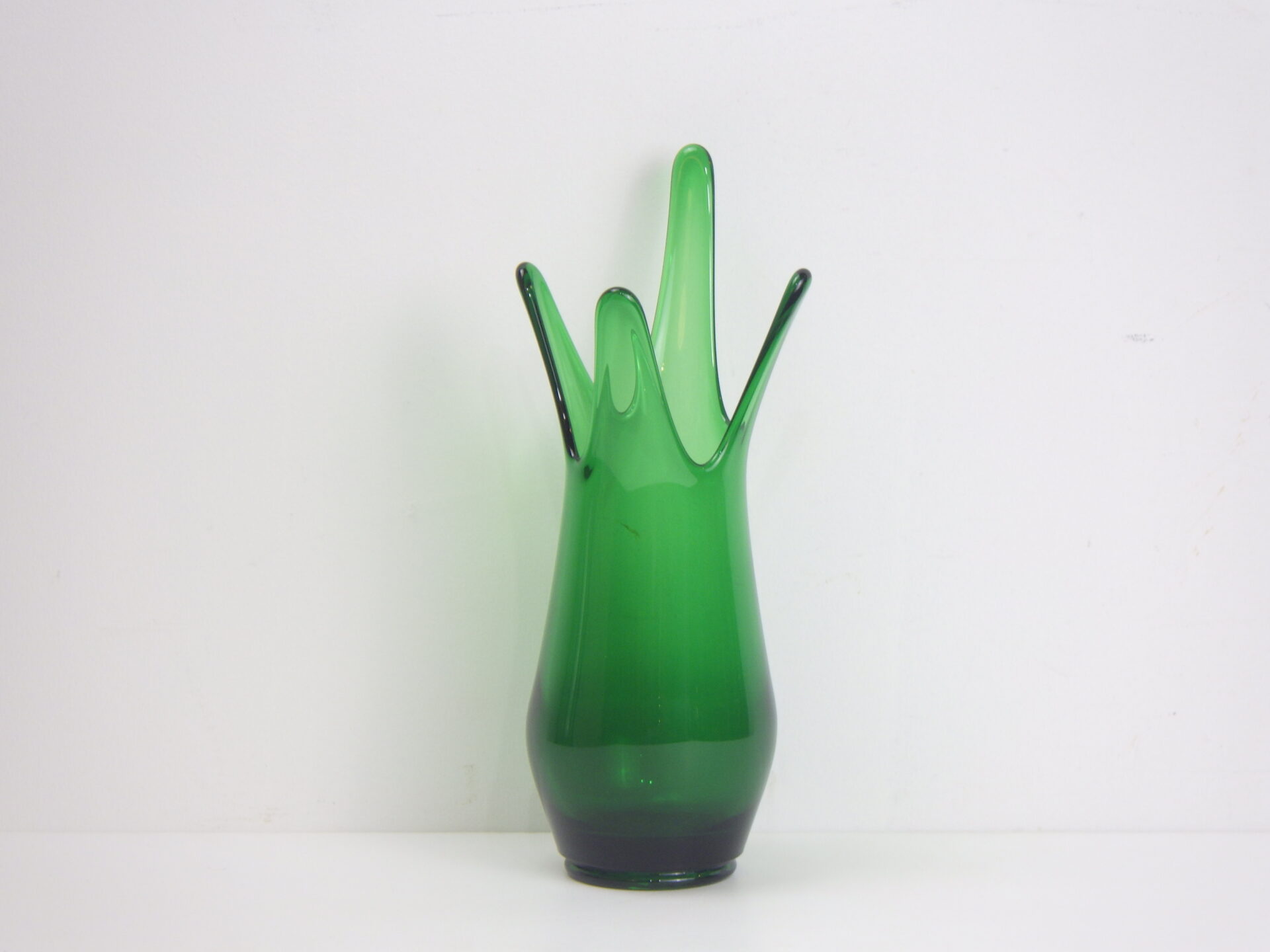 | アメリカで買い付けました。 鮮やかなグリーンが美しいビンテージのフラワーベースです。 まるで水が跳ねたようなアートなデザインで、見る角度によってかなり印象も変わってきます。 空間に合わせて置き方を変えてみるのも良さそう。 シンプルなお花でも華やかに演出してくれそうなので、どんなお花を飾るのか想像するのが楽しくなるアイテムです。 |