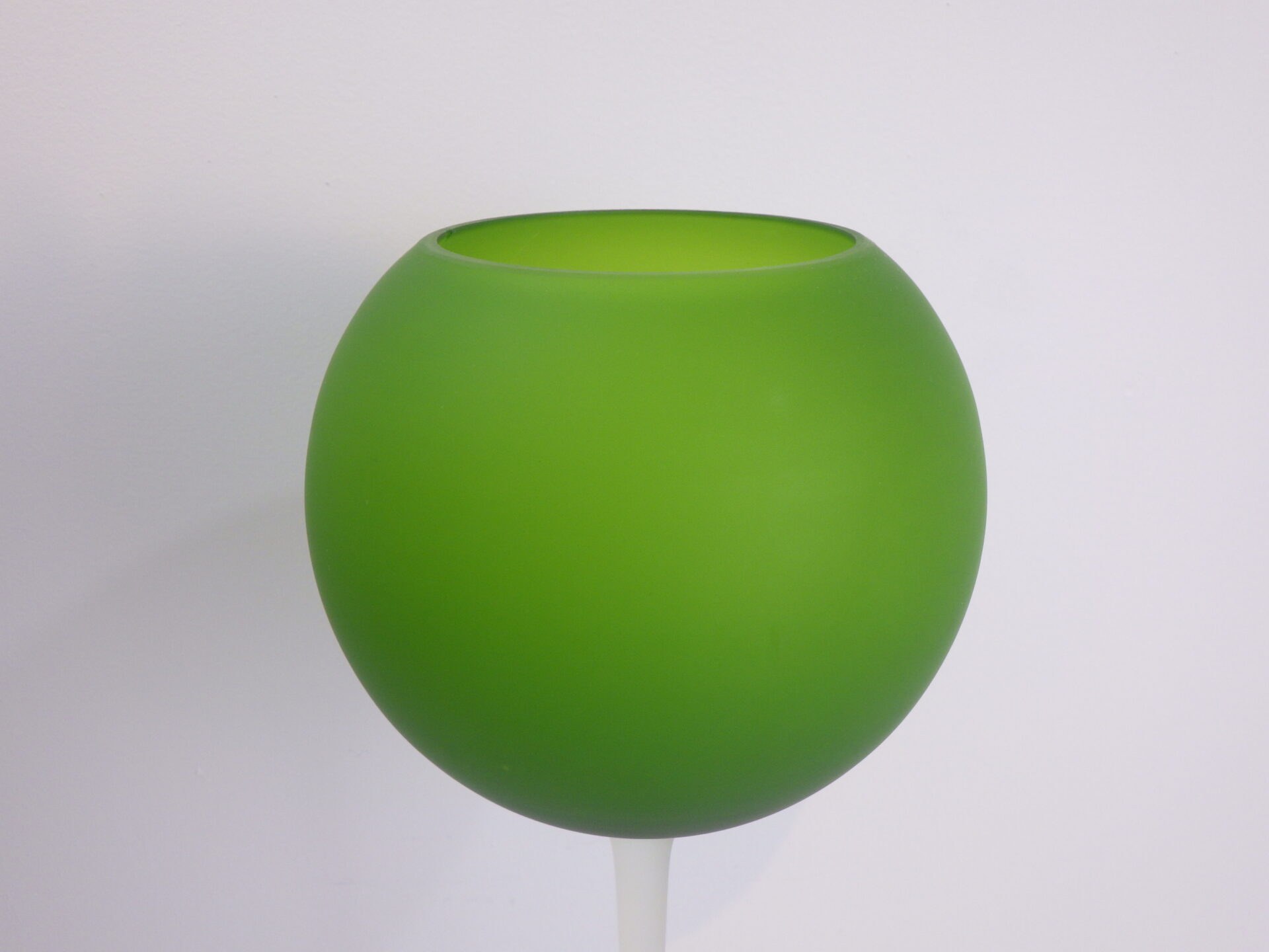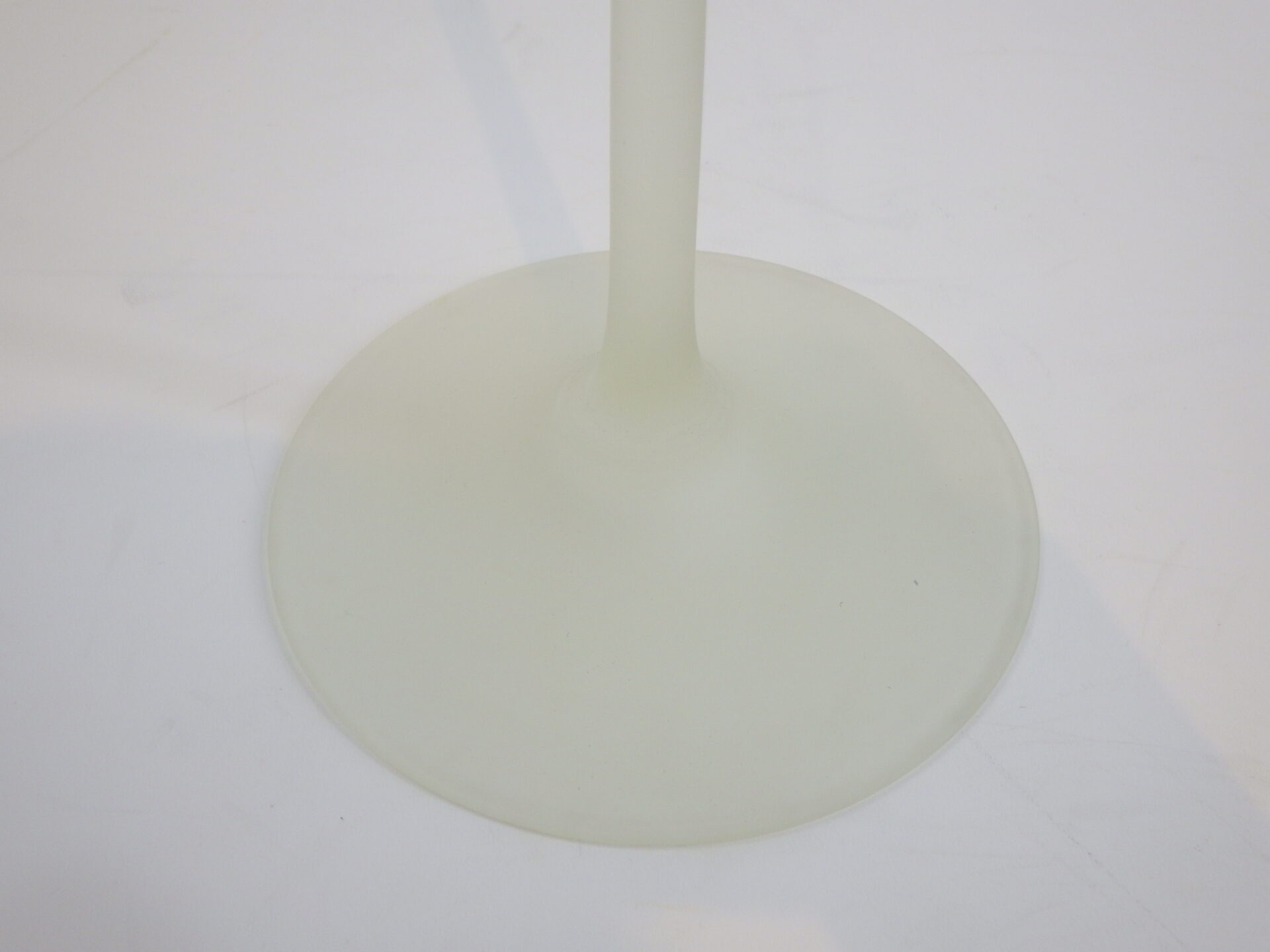 | アメリカで買い付けました。 イタリア、ムラノ島の伝統ガラスである、ベネチアンガラス、ムラノガラスの工房「Carlo Moretti(カルロモレッティ)」のワイングラス型フラワーベースです。 全体がフロスト加工されており、独特の風合いを醸し出しています。 モダンオブジェ・インテリアとして存在感がありますね。 |