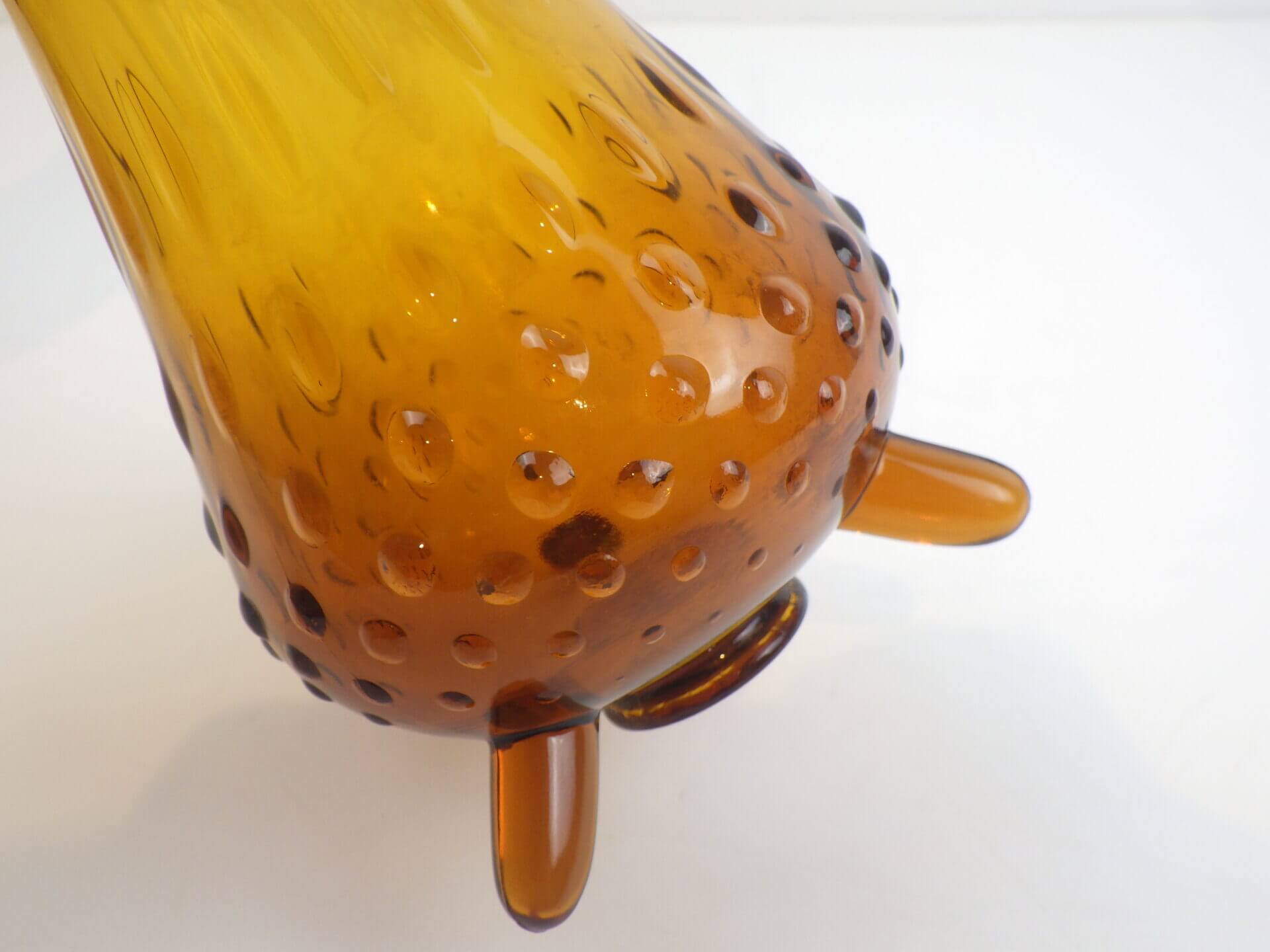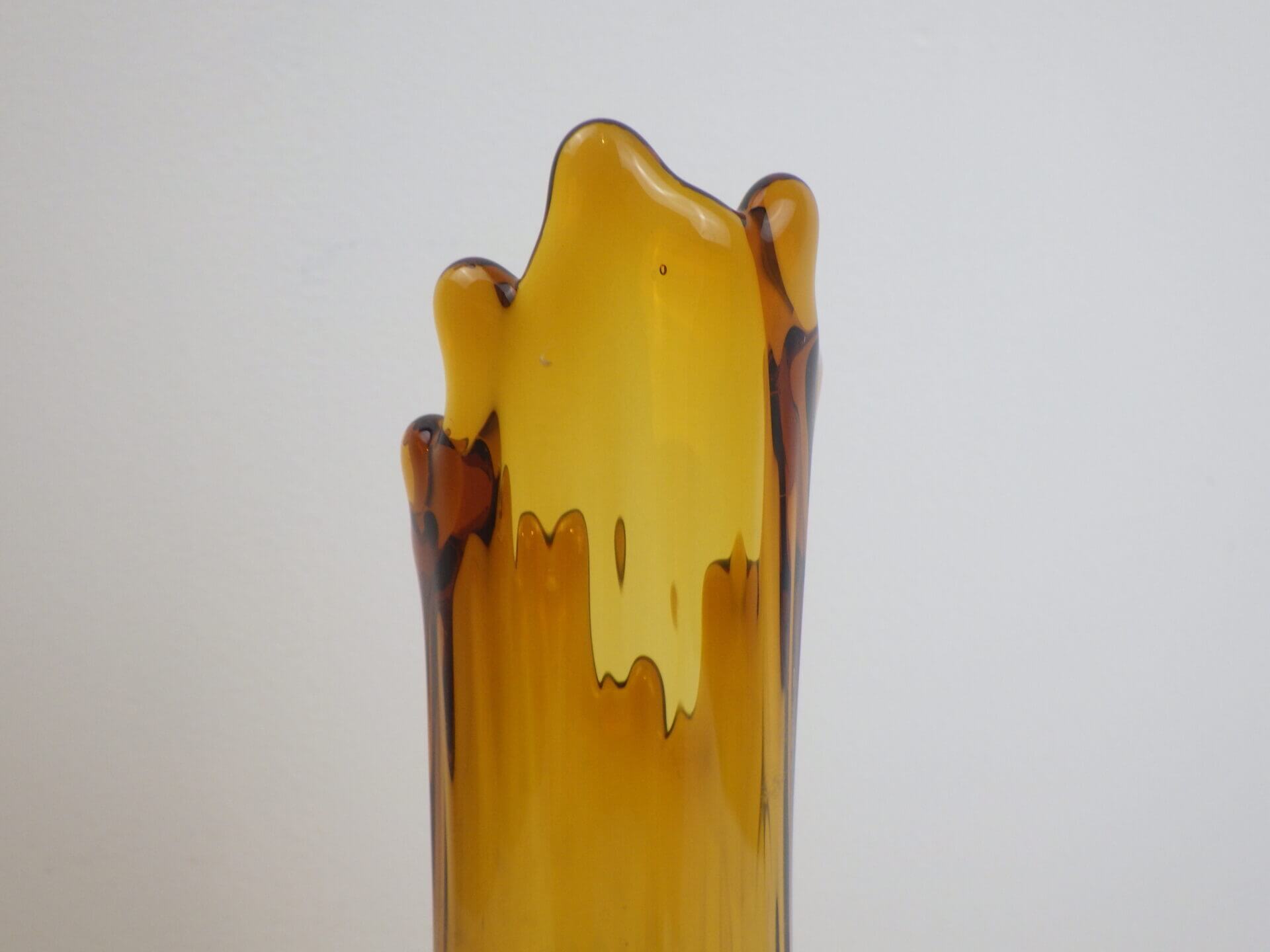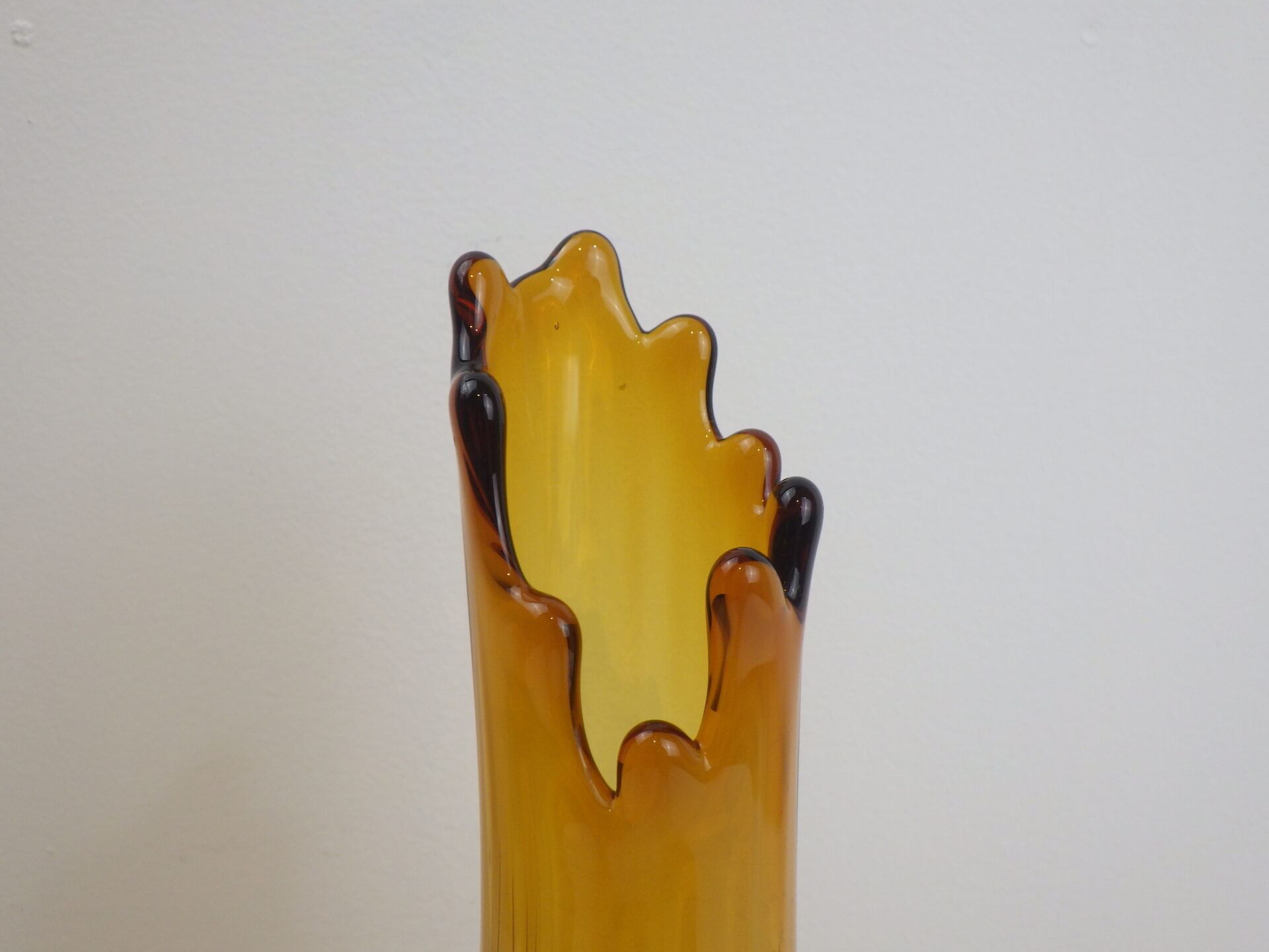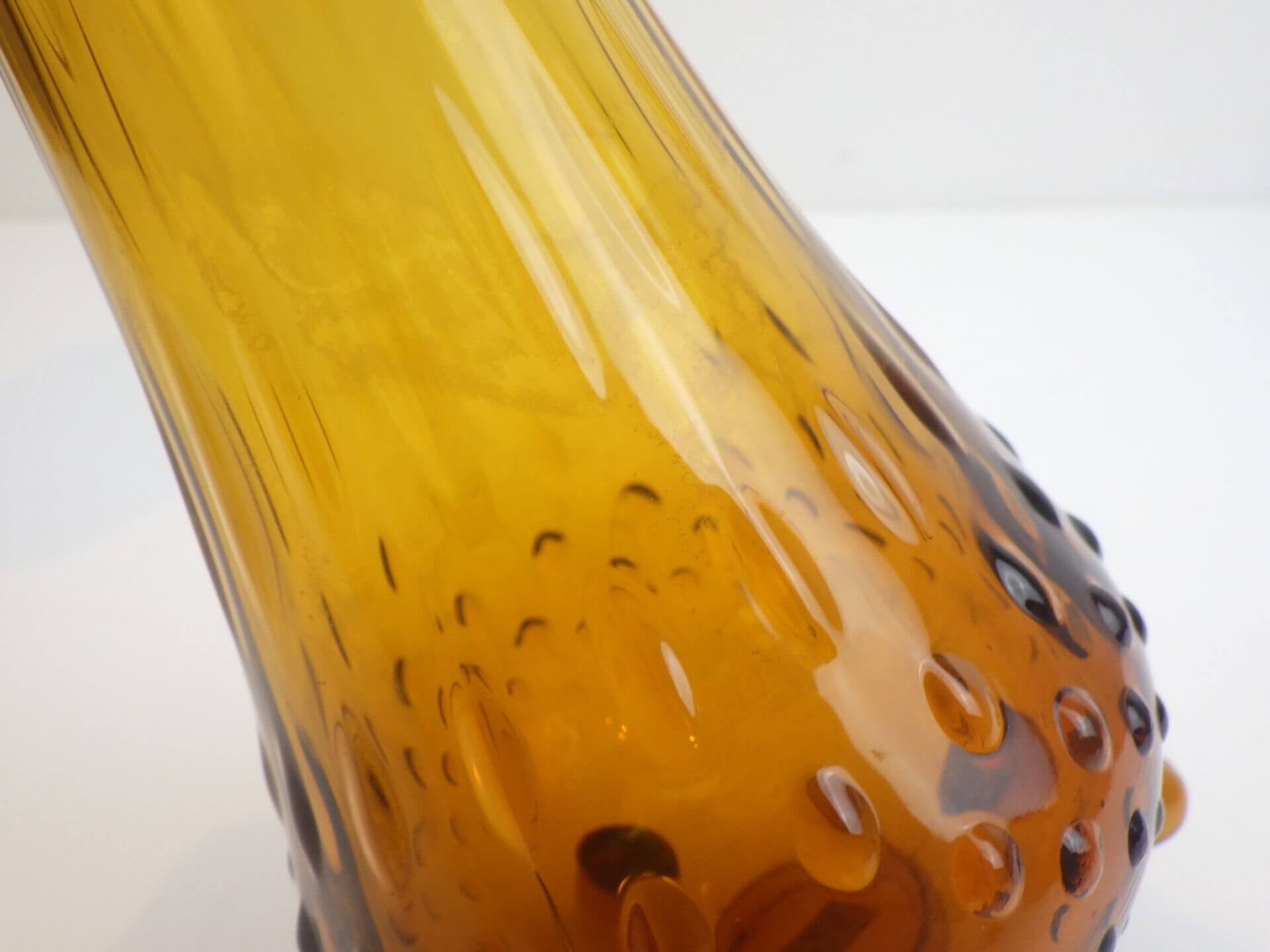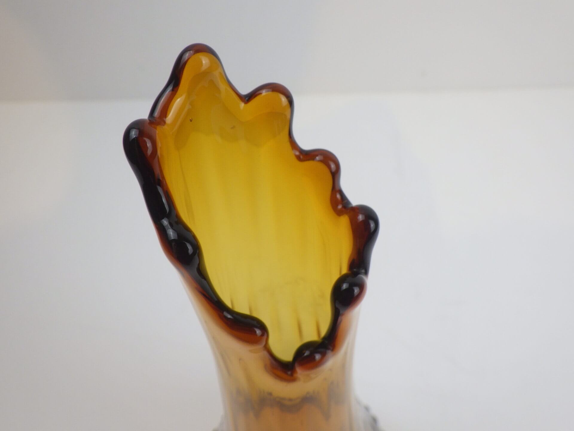 | アメリカで買い付けました。 1907年にペンシルベニア州で設立されたガラスメーカー「L.E.Smith Glass Company」のビンテージのフラワーベースです。 口部分は波打つような形状をしています。 側面は全体にエンボス加工が施されており、見る角度によって光の入り方が変わり、ライトアンバーに見えたり深いアンバーに見えたりと表情を変えます。 脚付きなのが嬉しいですね。 実用性もありますが、アートとして、インテリアのアクセントとしても活躍してくれそうです。 |