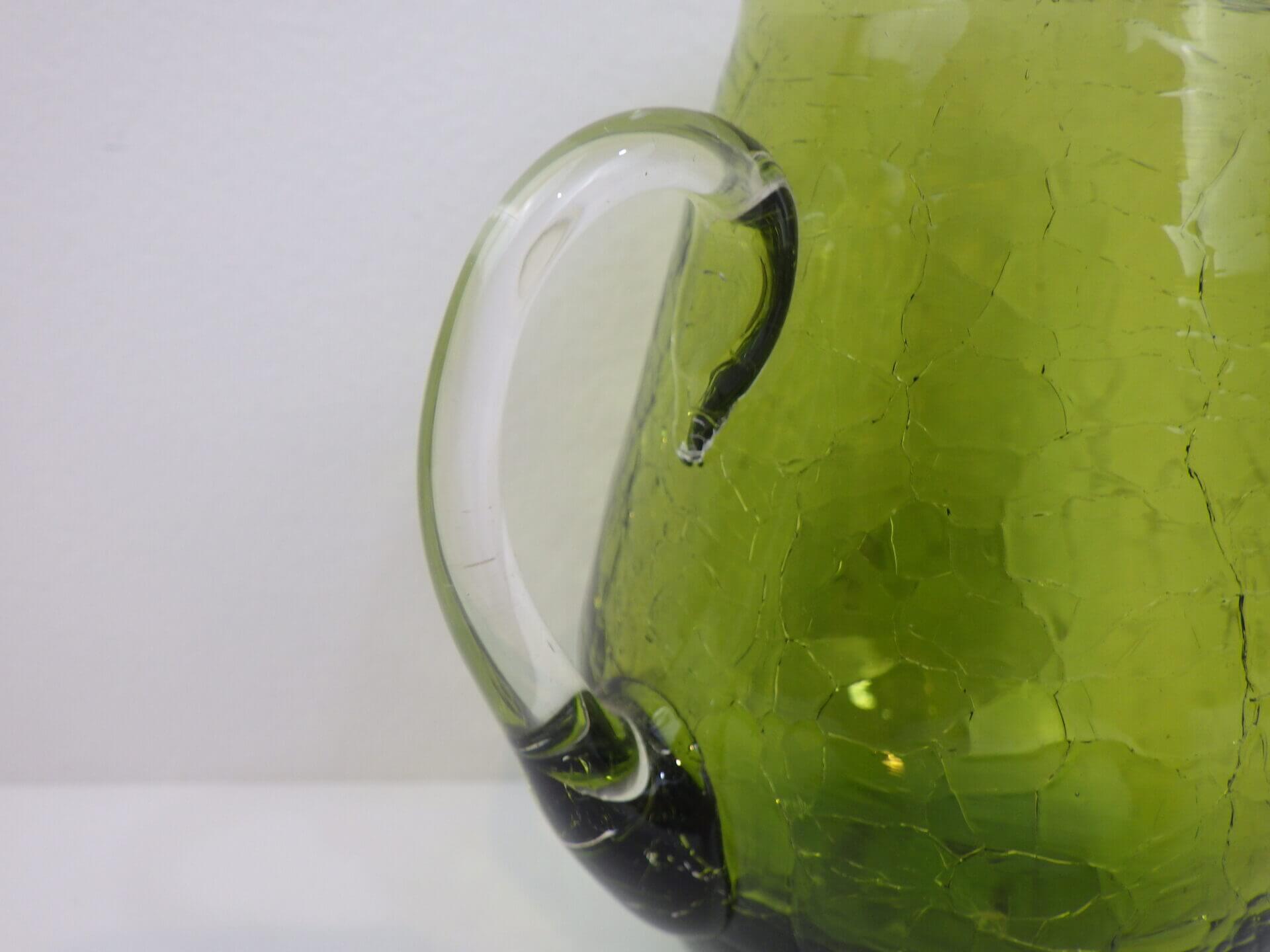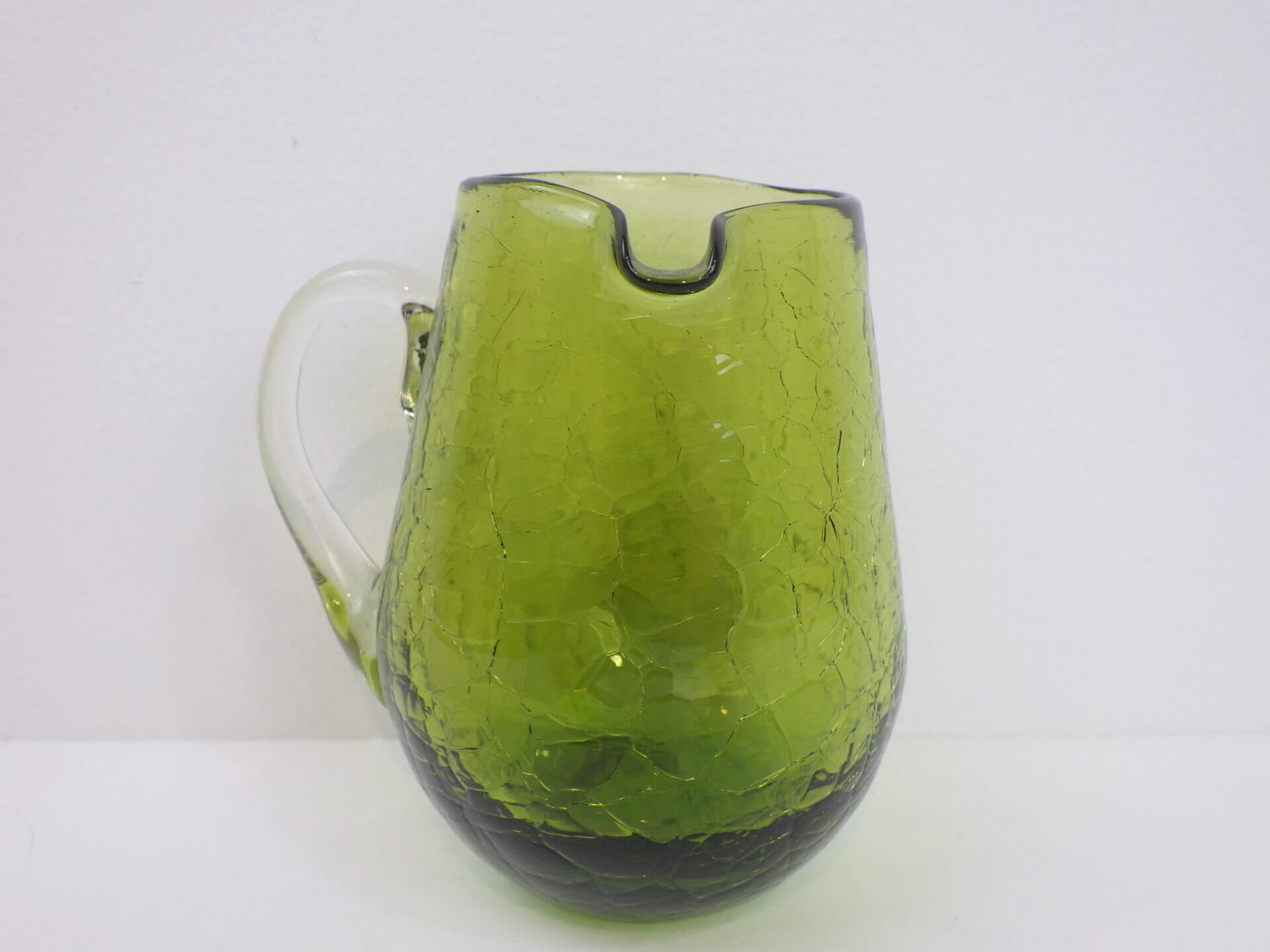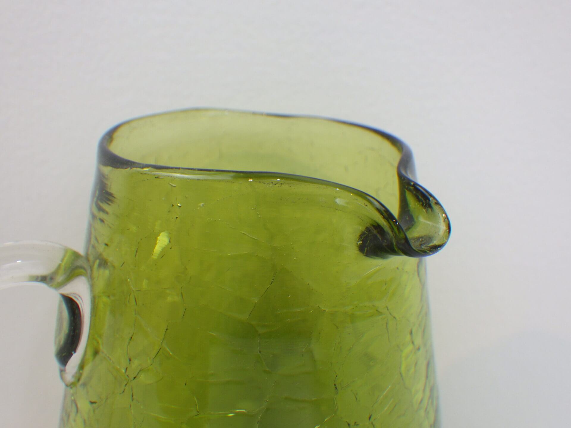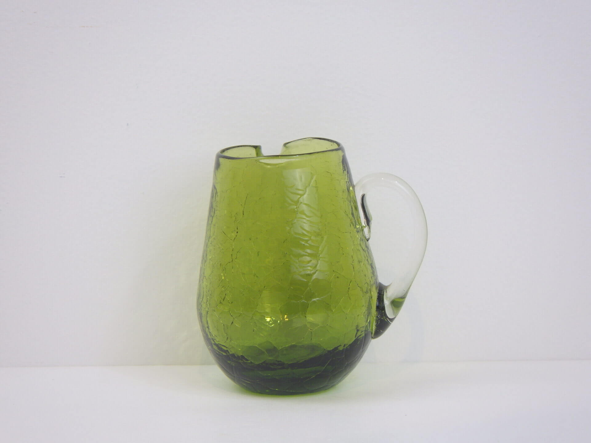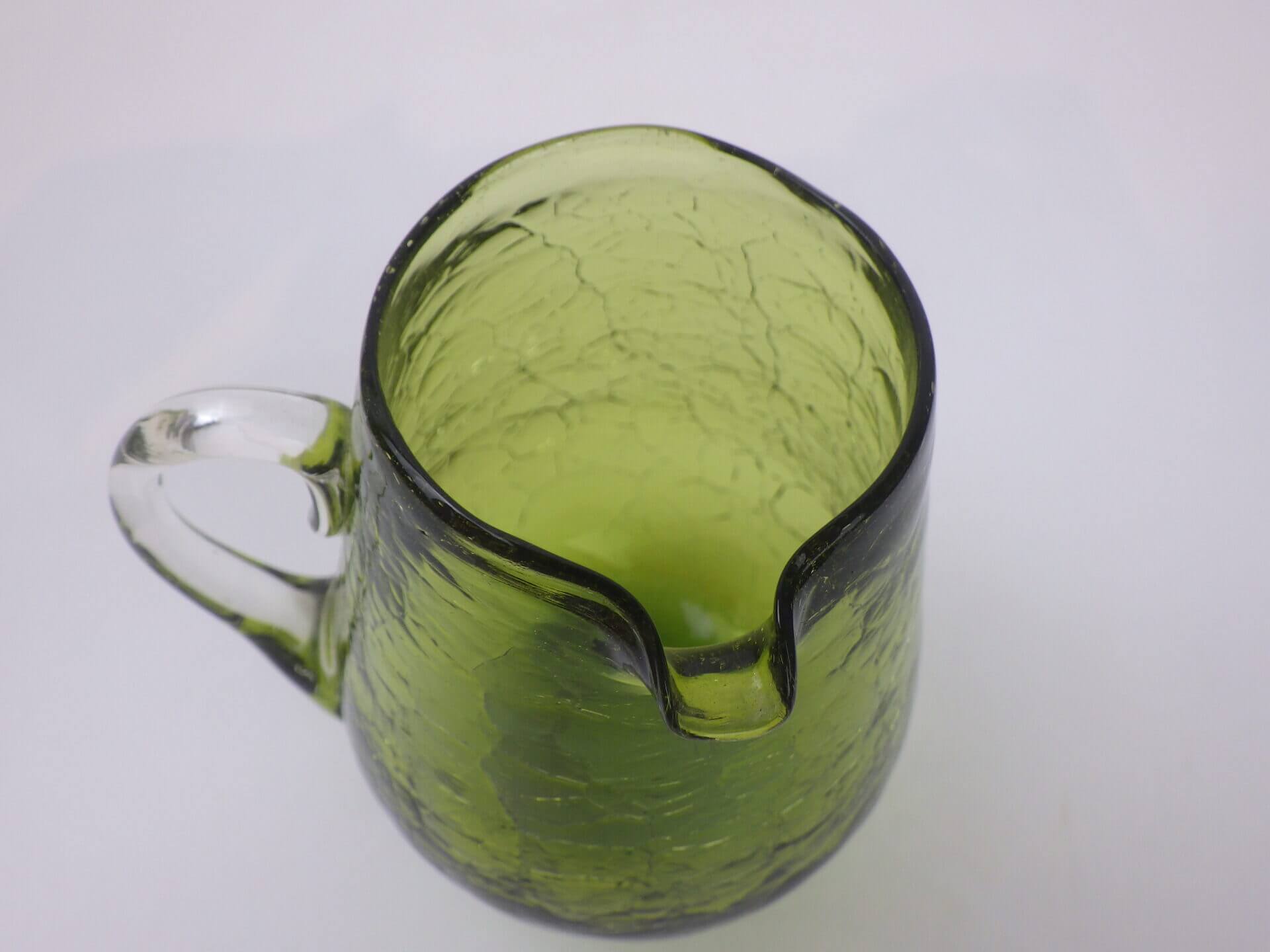 | product | Vintage Hand Blown Crackle Glass Pitcher Creamer/Vase(H9cm)/ビンテージ 貫入ガラス ピッチャー フラワーベース 花瓶 オリーブグリーン N |
