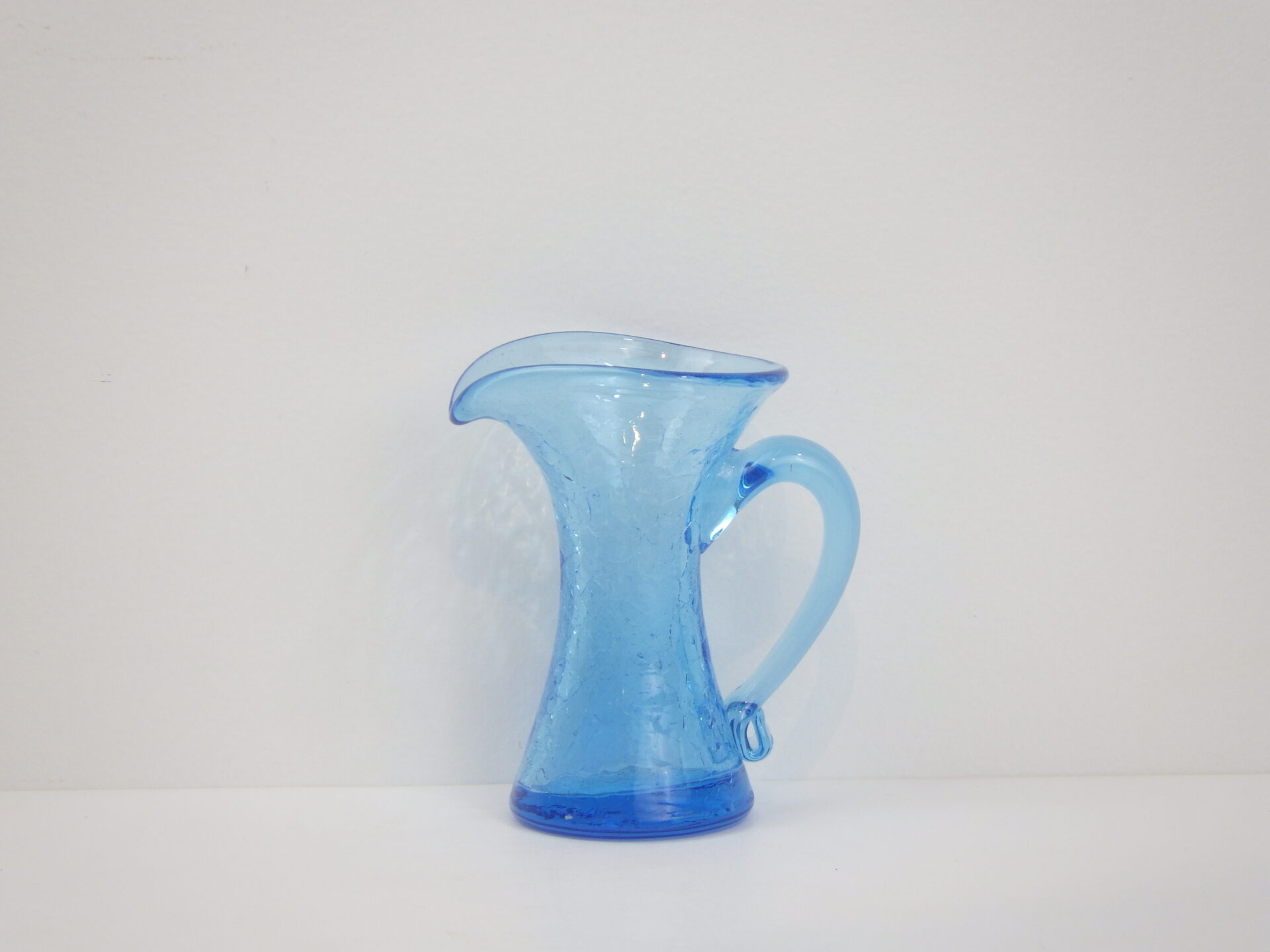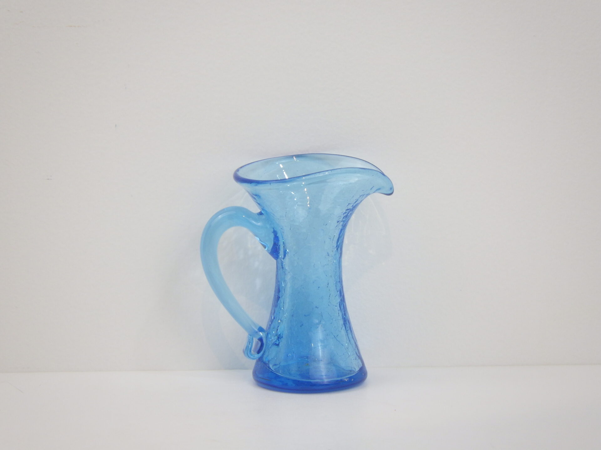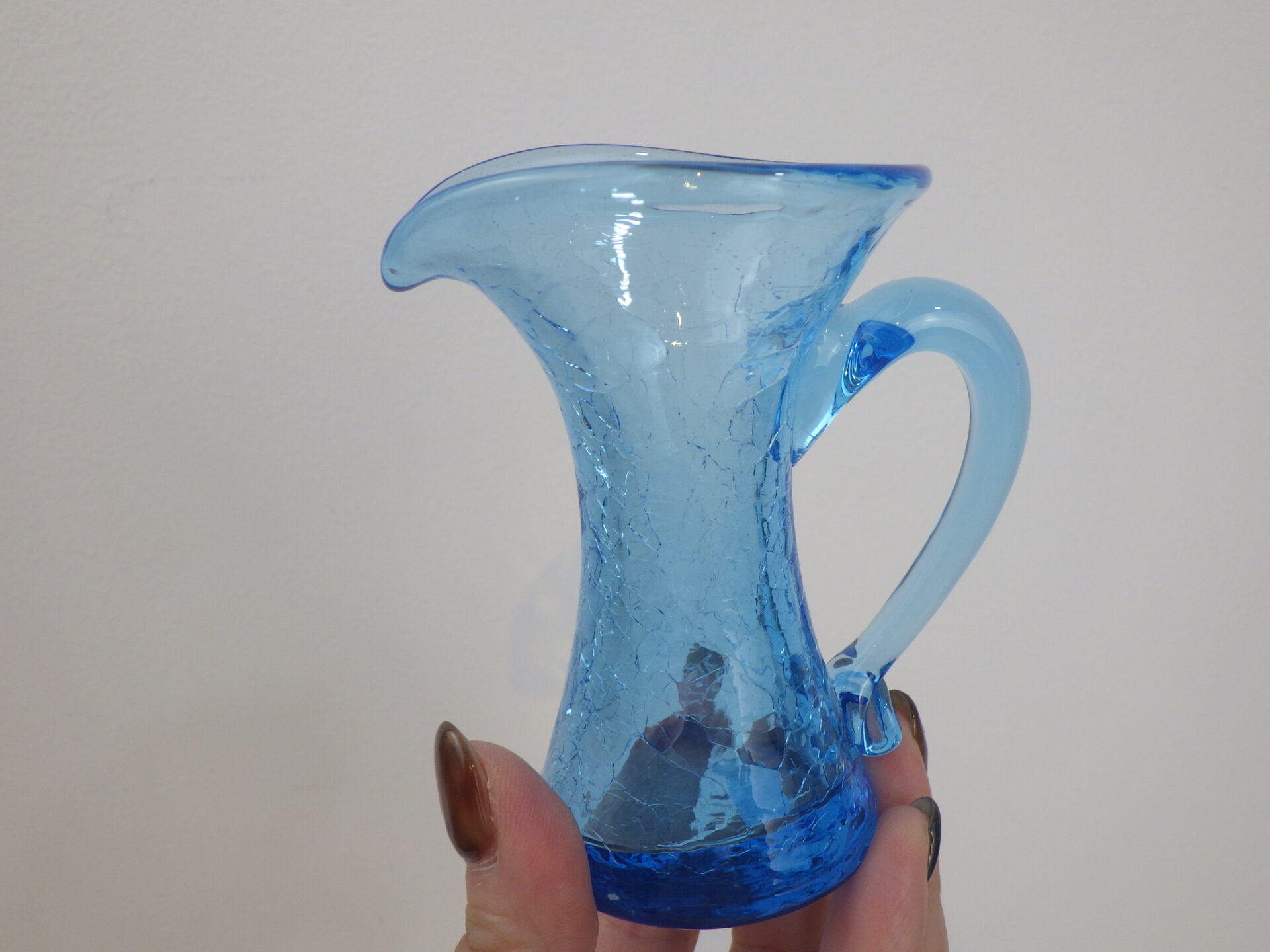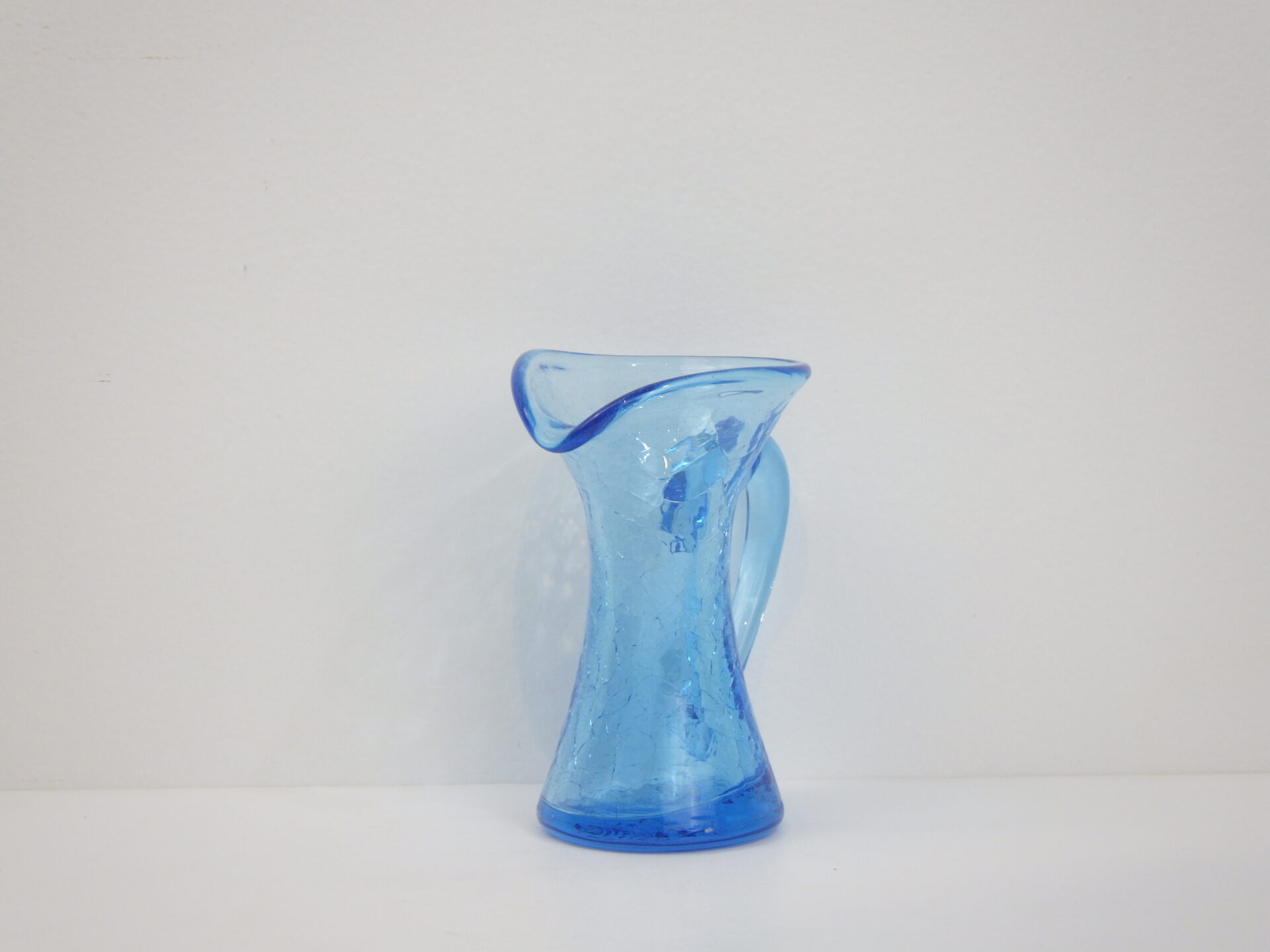 Vintage Hand Blown Crackle Glass Pitcher Creamer/Vase(H8.5cm)ビンテージ 貫入ガラス ピッチャー クリーマー フラワーベース 花瓶 ブルー J
