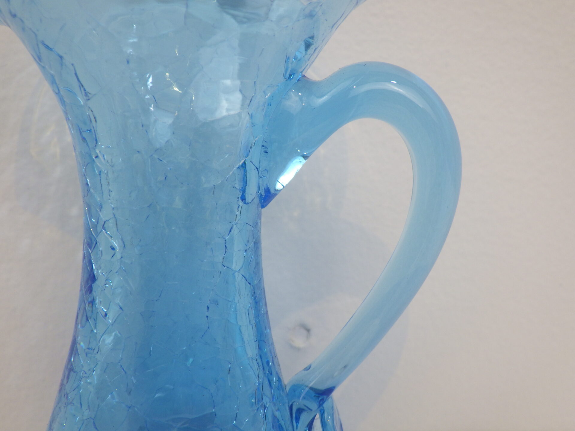 product Vintage Hand Blown Crackle Glass Pitcher Creamer/Vase(H8.5cm)/ビンテージ 貫入ガラス ピッチャー クリーマー フラワーベース 花瓶 ブルー J
