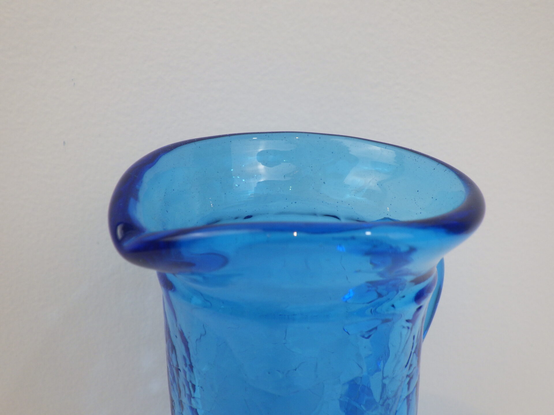 - Vintage Hand Blown Crackle Glass Pitcher Creamer/Vase(H10.3cm)ビンテージ 貫入ガラス ピッチャー クリーマー フラワーベース 花瓶 ブルー I