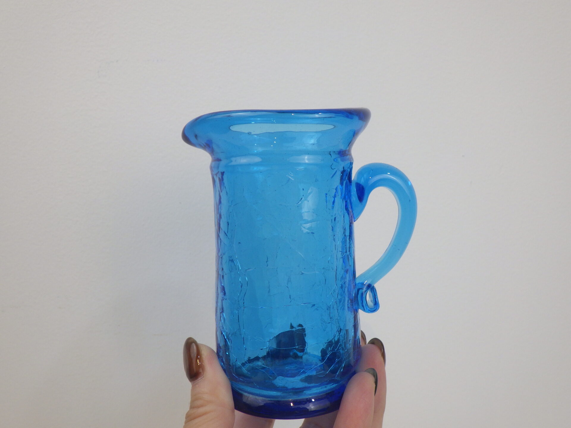 Vintage Hand Blown Crackle Glass Pitcher Creamer/Vase(H10.3cm)ビンテージ 貫入ガラス ピッチャー クリーマー フラワーベース 花瓶 ブルー I