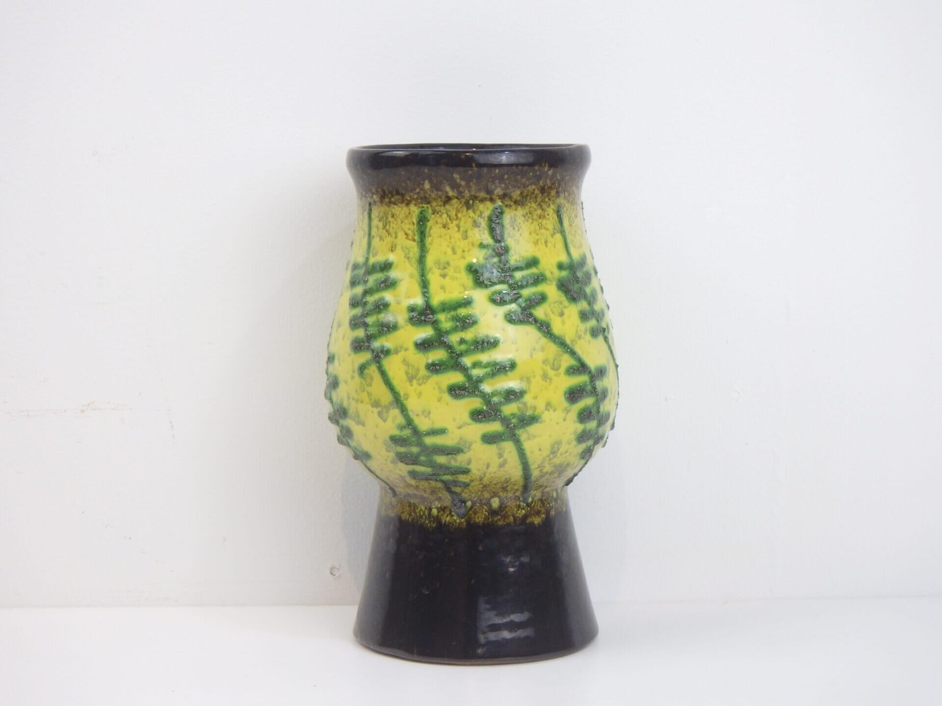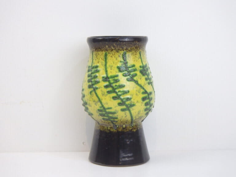 | ヨーロッパで買い付けました。 東ドイツ製の陶器のフラワーベースです。 「German Art Pottery」と呼ばれるこの時代のドイツの陶器は、多くが職人による手作業で製作されており、同じシリーズでも一つとして同じ表情の物が存在しません。 植物を彷彿とさせるような、プリミティブなカラーリングやデザインが可愛らしアイテム。 チューブで裏打ちされたFat Lava釉薬が特徴的です。 |