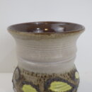 | ヨーロッパで買い付けました。 東ドイツ製の陶器のフラワーベースです。 「German Art Pottery」と呼ばれるこの時代のドイツの陶器は、多くが職人による手作業で製作されており、同じシリーズでも一つとして同じ表情の物が存在しません。 植物を彷彿とさせるような、プリミティブなカラーリングやデザインと、ぽってりとしたフォルムが可愛らしアイテム。 チューブで裏打ちされたFat Lava釉薬が特徴的です。 |