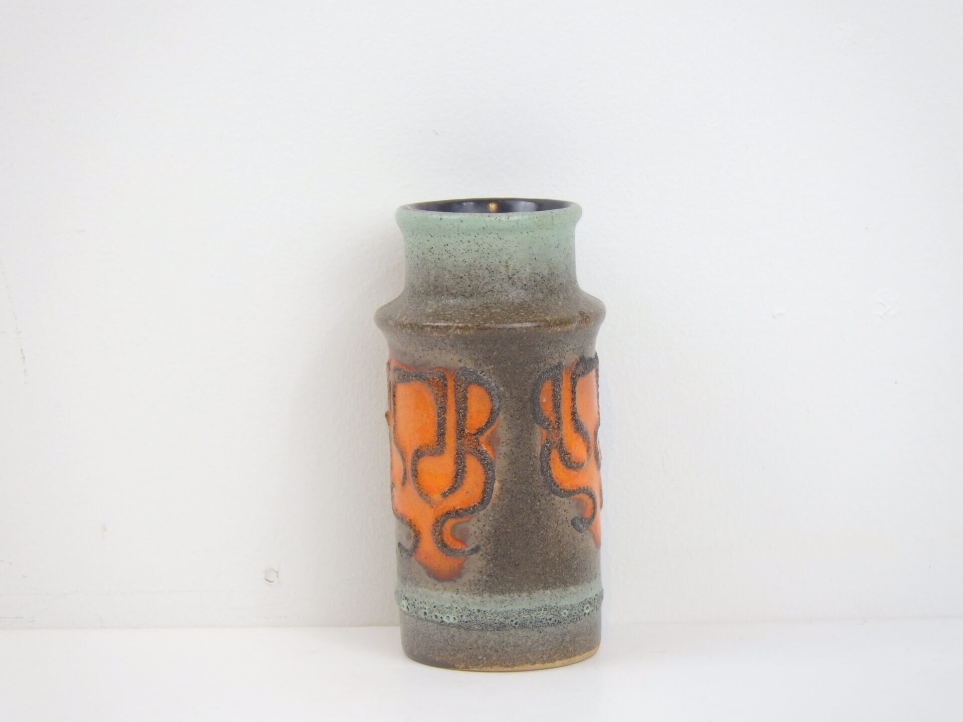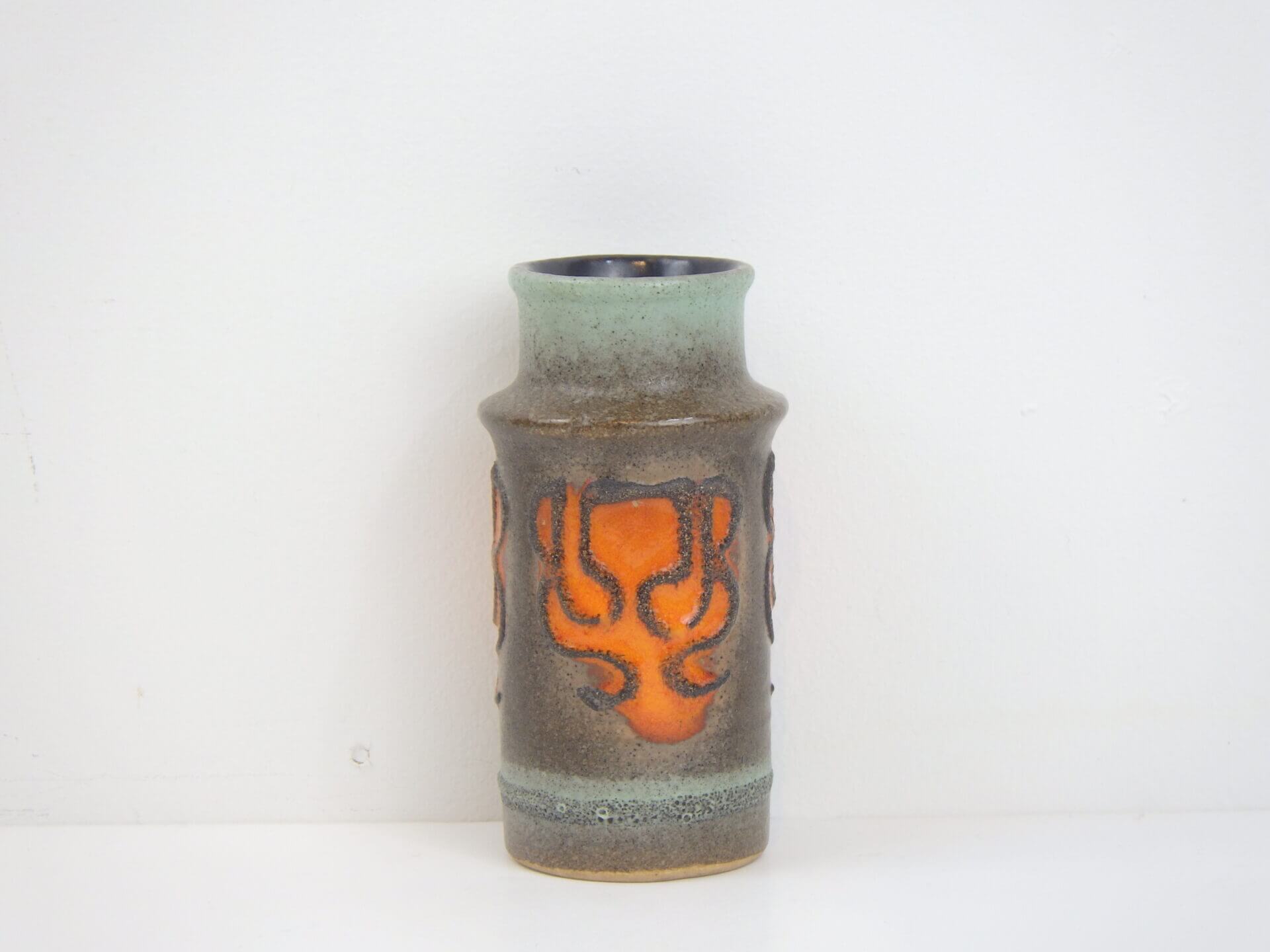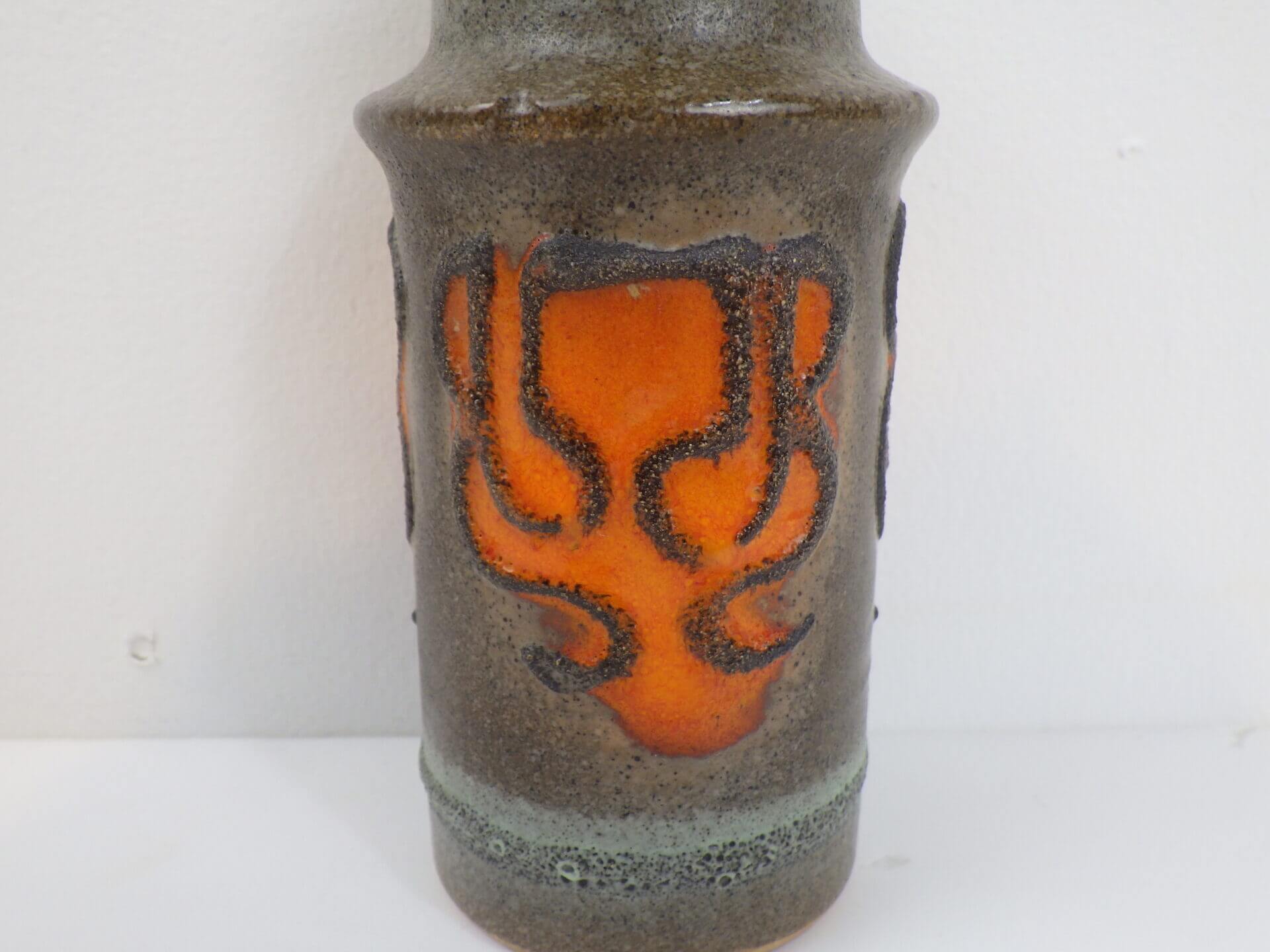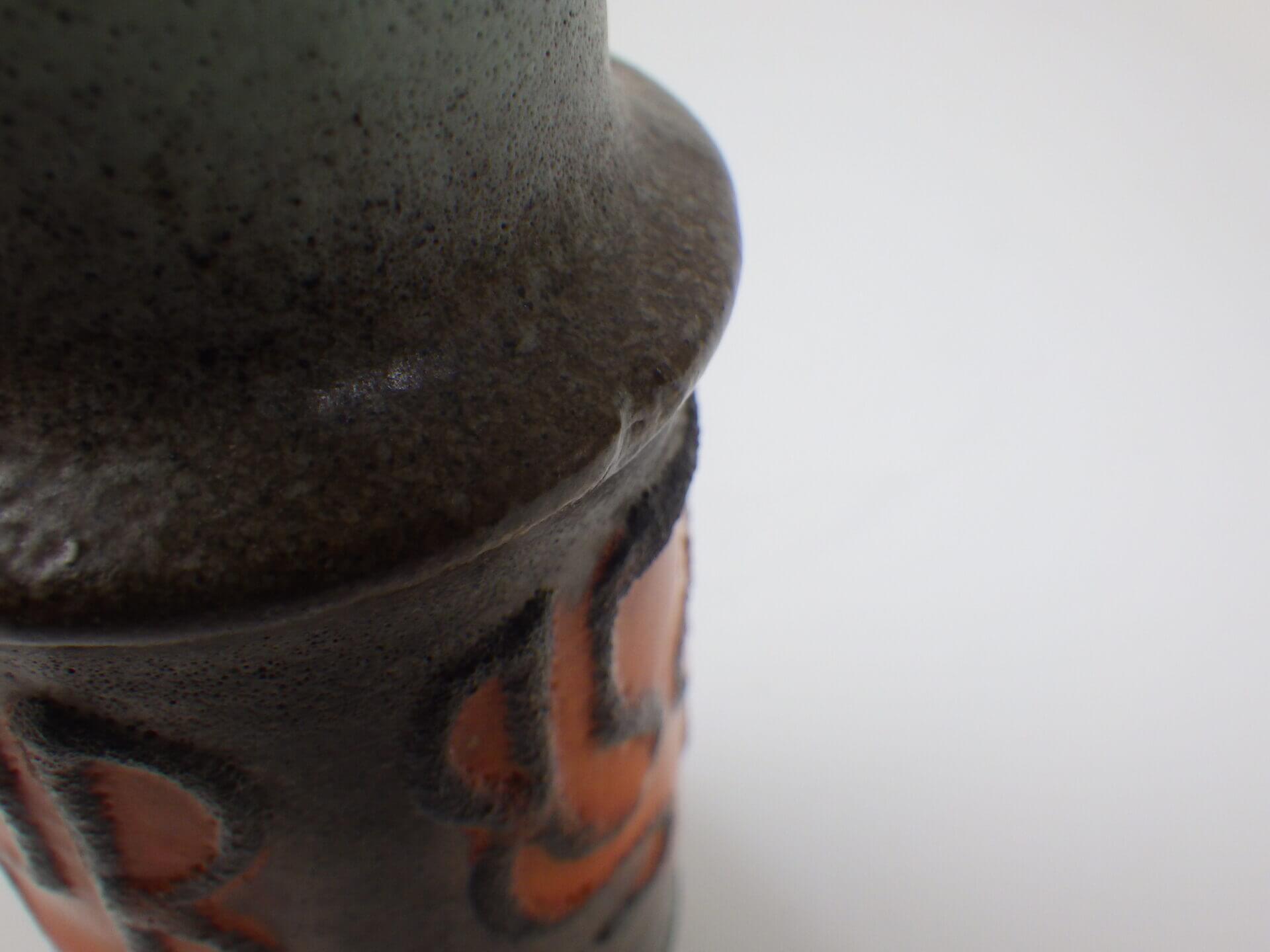 | ヨーロッパで買い付けました。 東ドイツ製の陶器のフラワーベースです。 「German Art Pottery」と呼ばれるこの時代のドイツの陶器は、多くが職人による手作業で製作されており、同じシリーズでも一つとして同じ表情の物が存在しません。 こちらは本体中央の特徴的なデザインとオレンジカラーが目を惹きますが、上部と下部に薄っすらと色付けされたグリーングレーのような釉薬も美しいアイテムです。 |