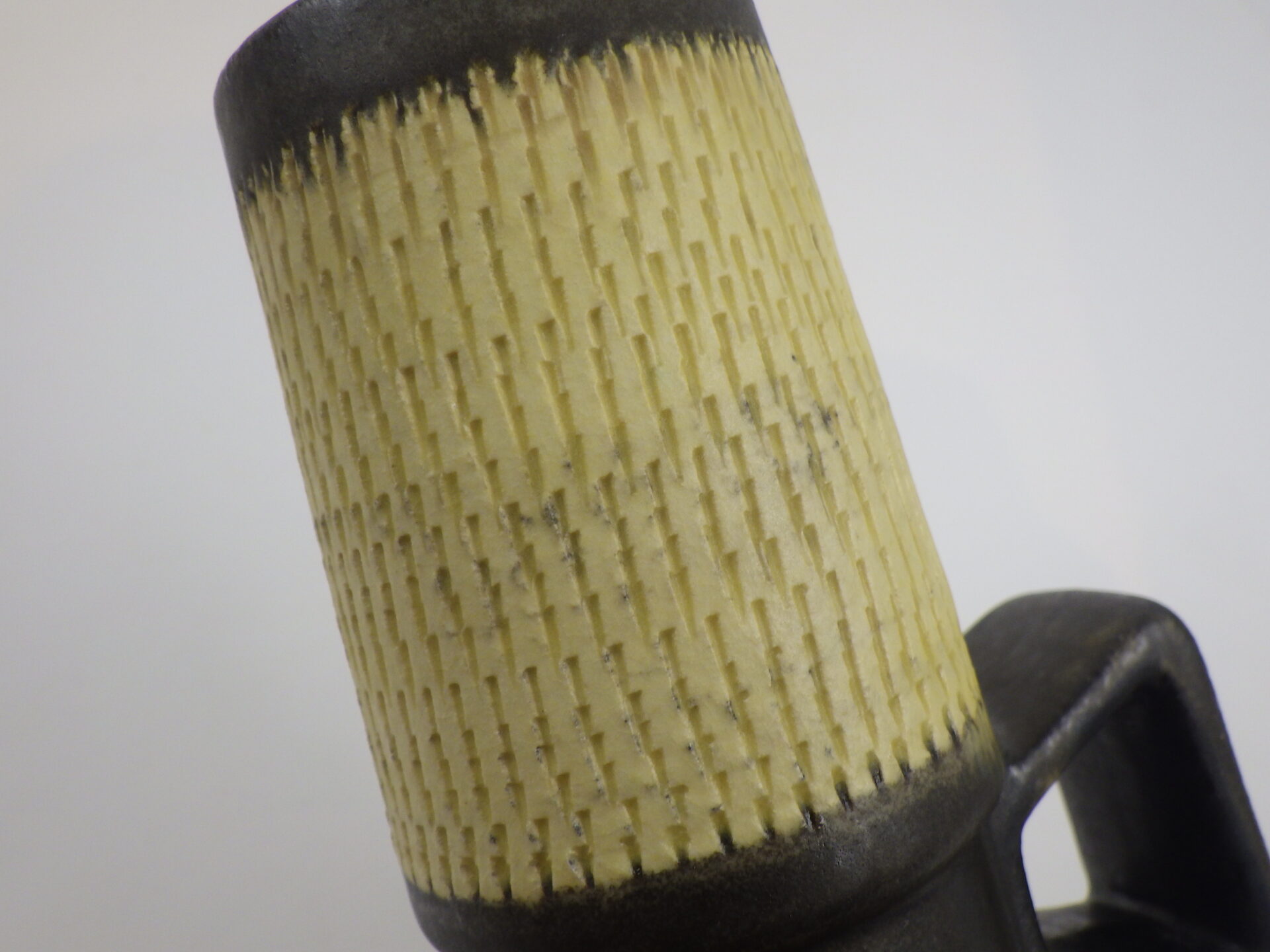 | ヨーロッパで買い付けました。 陶器のフラワーベースです。 「Fat Lava」「German Art Pottery」と呼ばれるこの時代のドイツの陶器は、多くが職人による手作業で製作されており、同じシリーズでも一つとして同じ表情の物が存在しません。 茶と黄の落ち着いたコントラストのこちらのアイテムは、場所を選ばず馴染みやすい印象です。 空間のアクセントにいかがですか? |