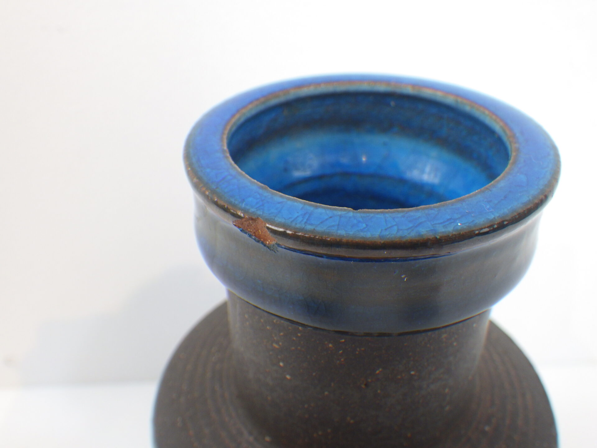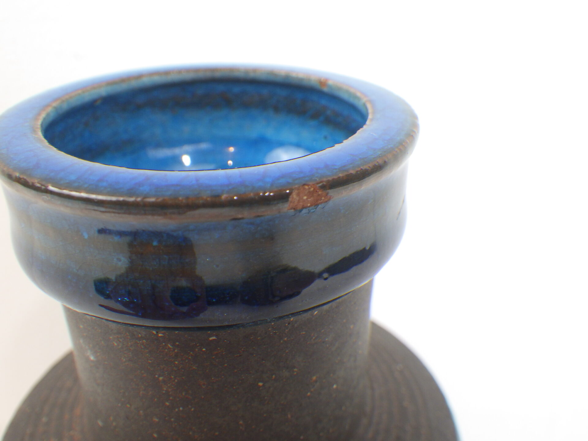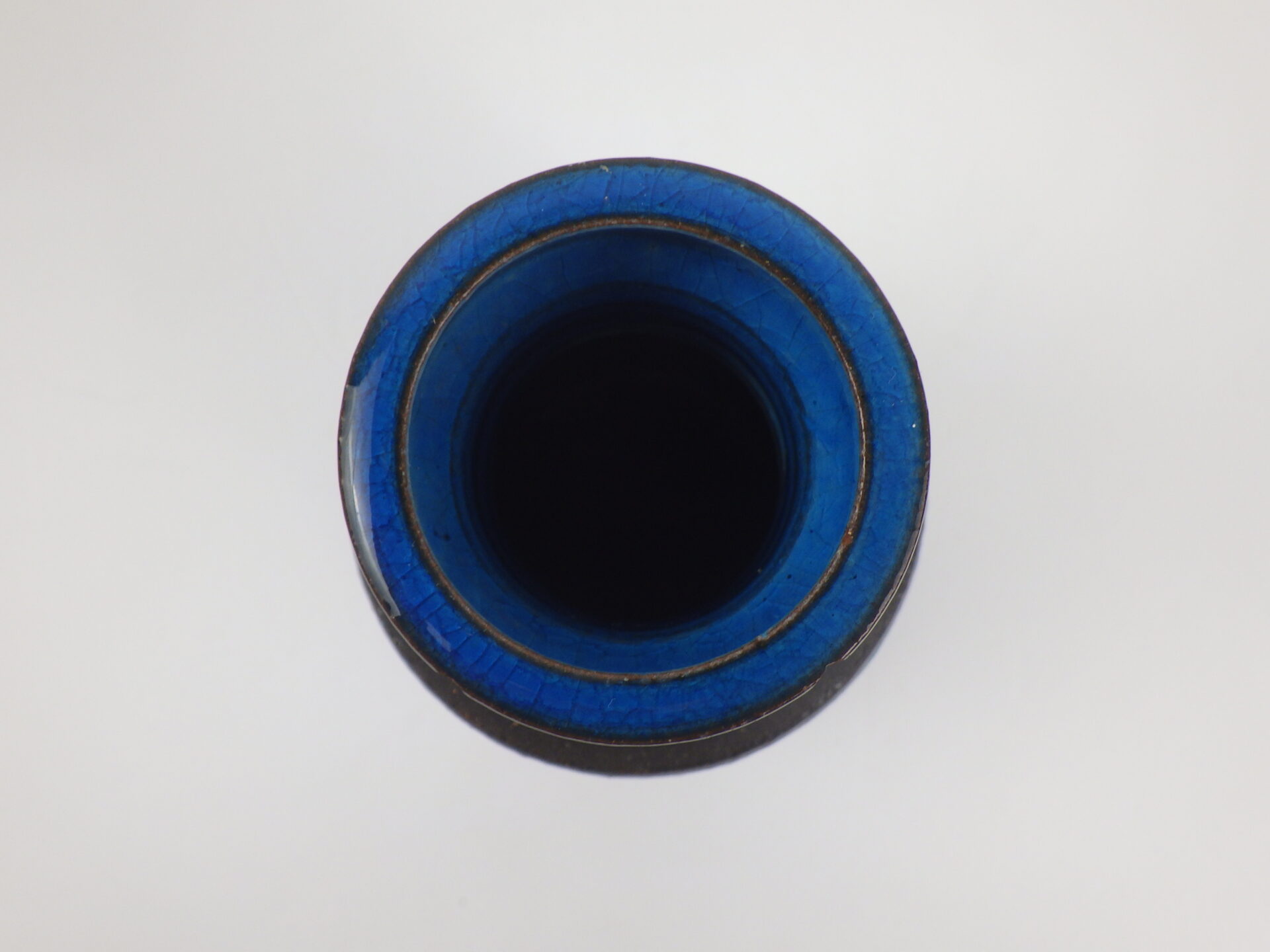 | ヨーロッパで買い付けました。 1839年創業、デンマークのKahlerのフラワーベースです。 Nils Kahlerによるデザイン。 素地と、深みのあるブルーの飴釉のコントラストが美しいアイテムですね。 底にはKehler窯が家族経営であった74年まで用いられていたHAKのサインも刻まれています。 |
