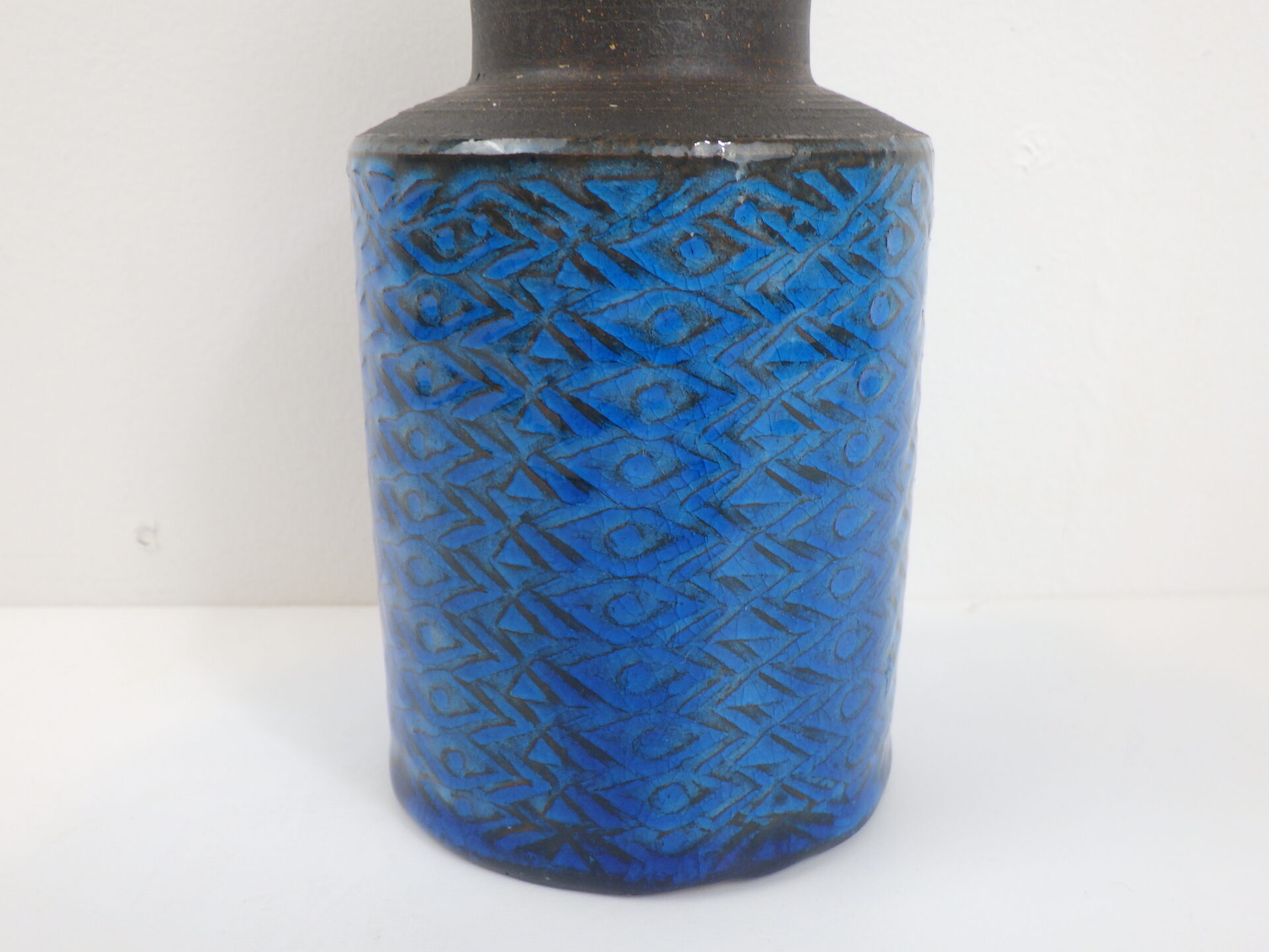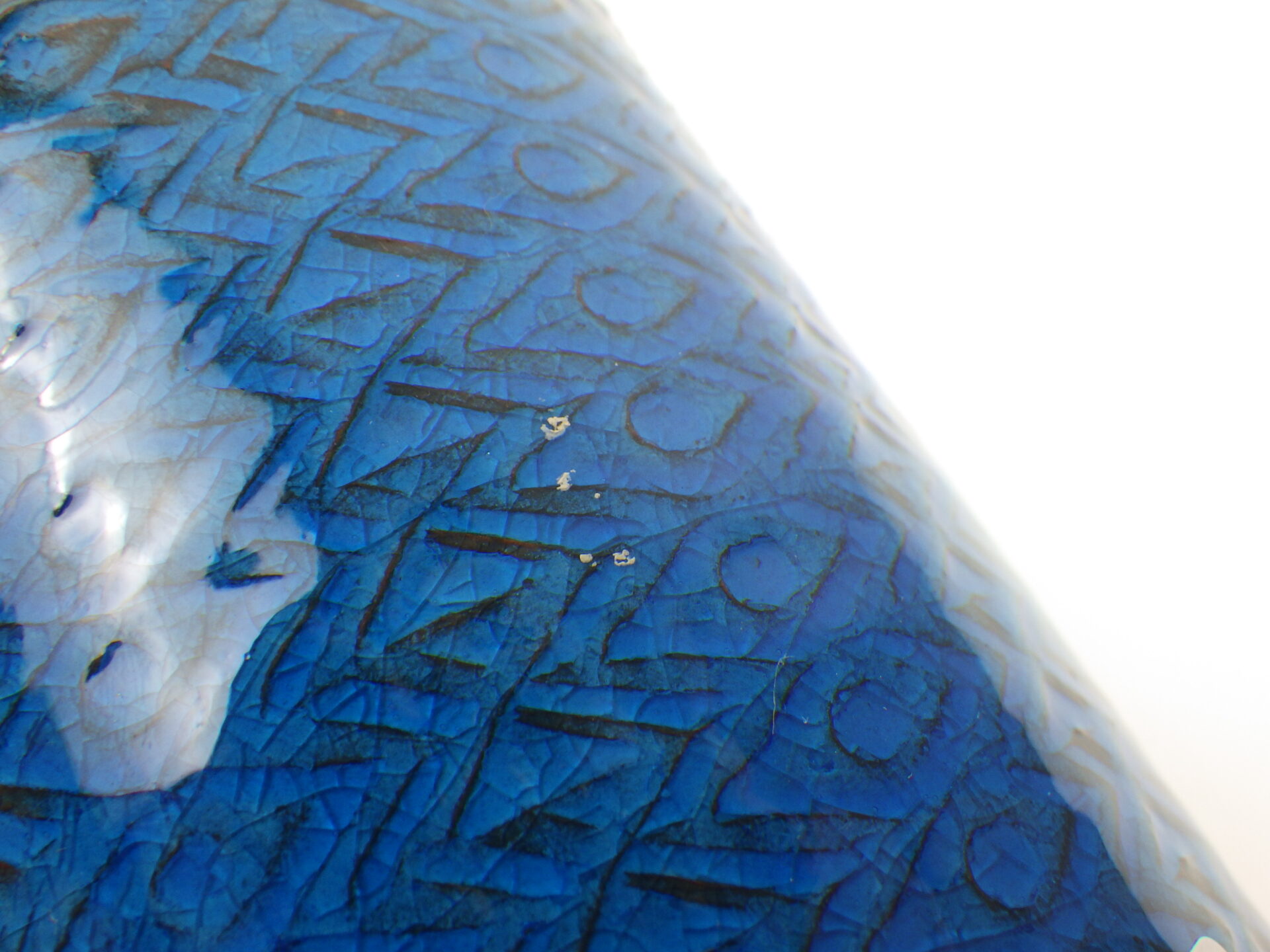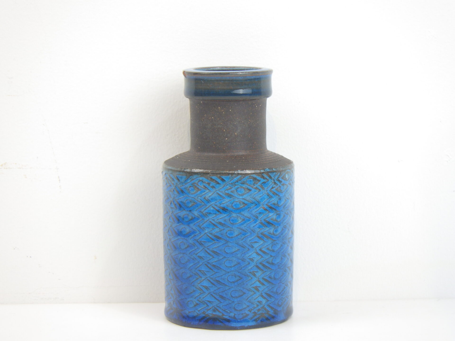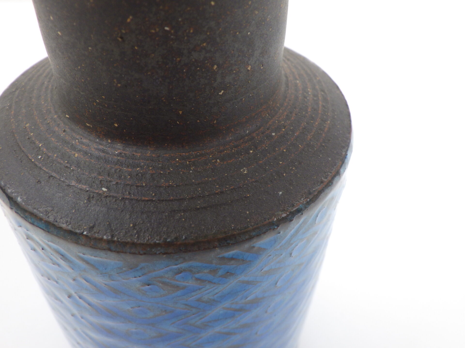 | ヨーロッパで買い付けました。 1839年創業、デンマークのKahlerのフラワーベースです。 Nils Kahlerによるデザイン。 素地と、深みのあるブルーの飴釉のコントラストが美しいアイテムですね。 底にはKehler窯が家族経営であった74年まで用いられていたHAKのサインも刻まれています。 |