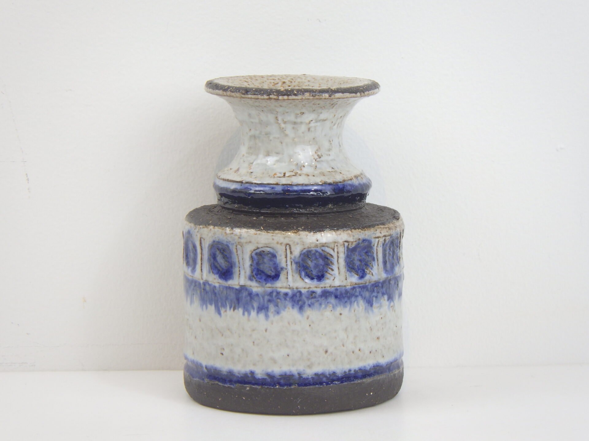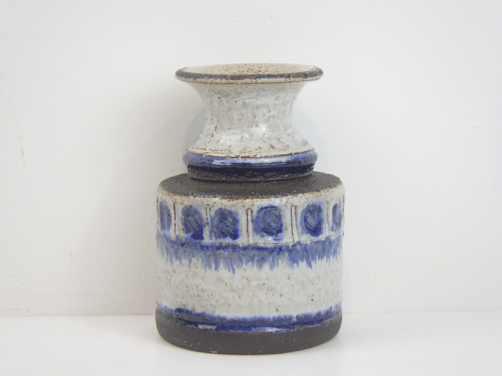 | ヨーロッパで買い付けました。 陶器のフラワーベースです。 白い釉薬の中に青い釉薬がじんわりと溶け込むようなデザイン。 優しい気分にさせてくれるアイテムです。 |