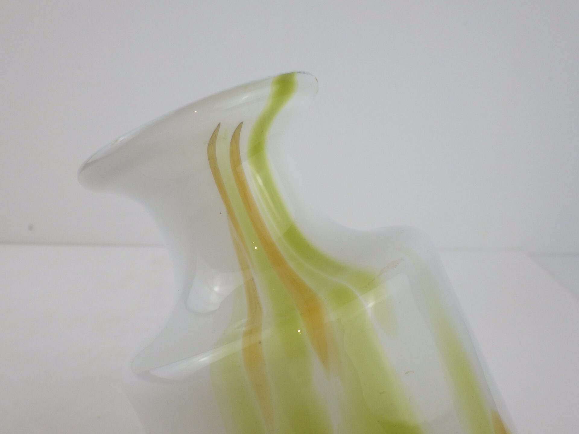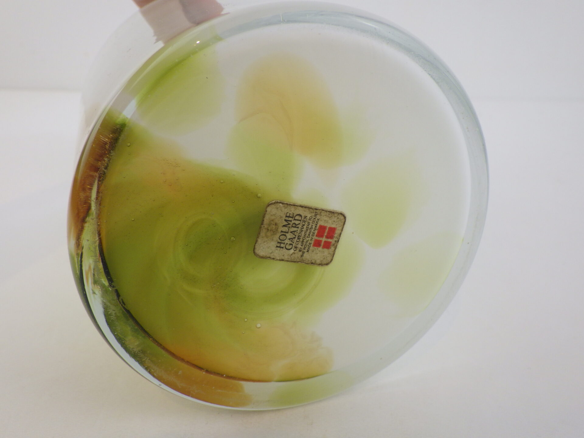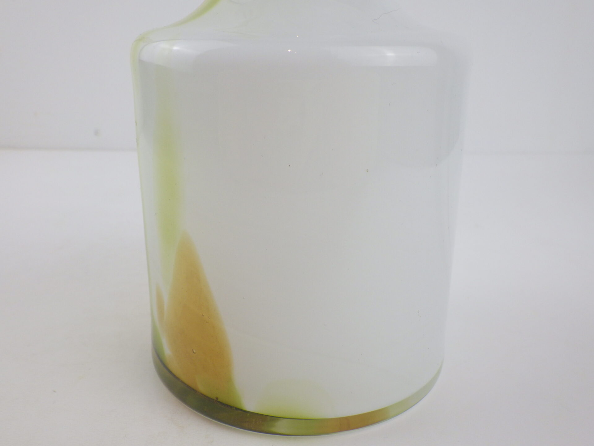 | ヨーロッパで買い付けました。 デンマーク王室御用達、Holmegaardのフラワーベースです。 デザイナーはアートディレクターとして活躍したPer Lukten。 乳白色のベースにピスタチオとオーカーカラーが流れるように配色された、美しいアイテムです。 手吹きガラスならではの一点物の味わいを存分に楽しめるのも、魅力の一つですね。 |