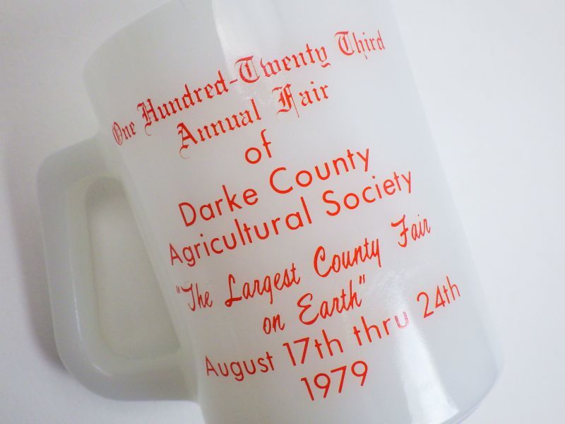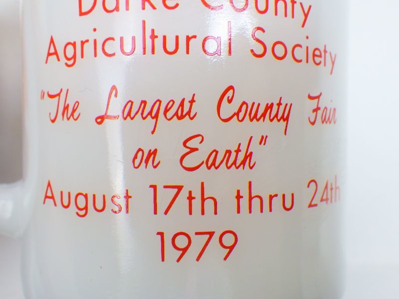 | グリーンビルのカウンティフェアのロゴがプリントされたコンチネンタル・スタッキングマグです。 1979年とプリントされています。 カウンティフェアとは、長い夏休みを楽しく過ごすために、カウンティ(郡)ごとに開催される、夏祭りのようなものです。コンサートや移動遊園地、屋台、家畜の品評会など、沢山のイベントが行われます。 |