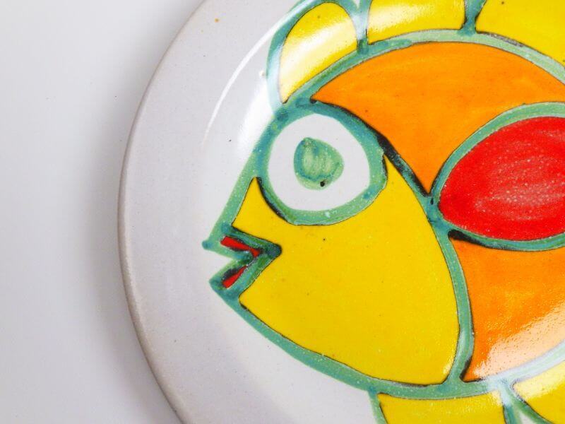 | アメリカで買い付けた、イタリアのシチリア島の陶芸作家、ジョヴァンニ・デ・シモーネのポップでアートなプレートです。 ピカソと机を並べ、影響を受けたとされています。 シチリア島の暖かで陽気な気候が感じられるアイテムですね。 |