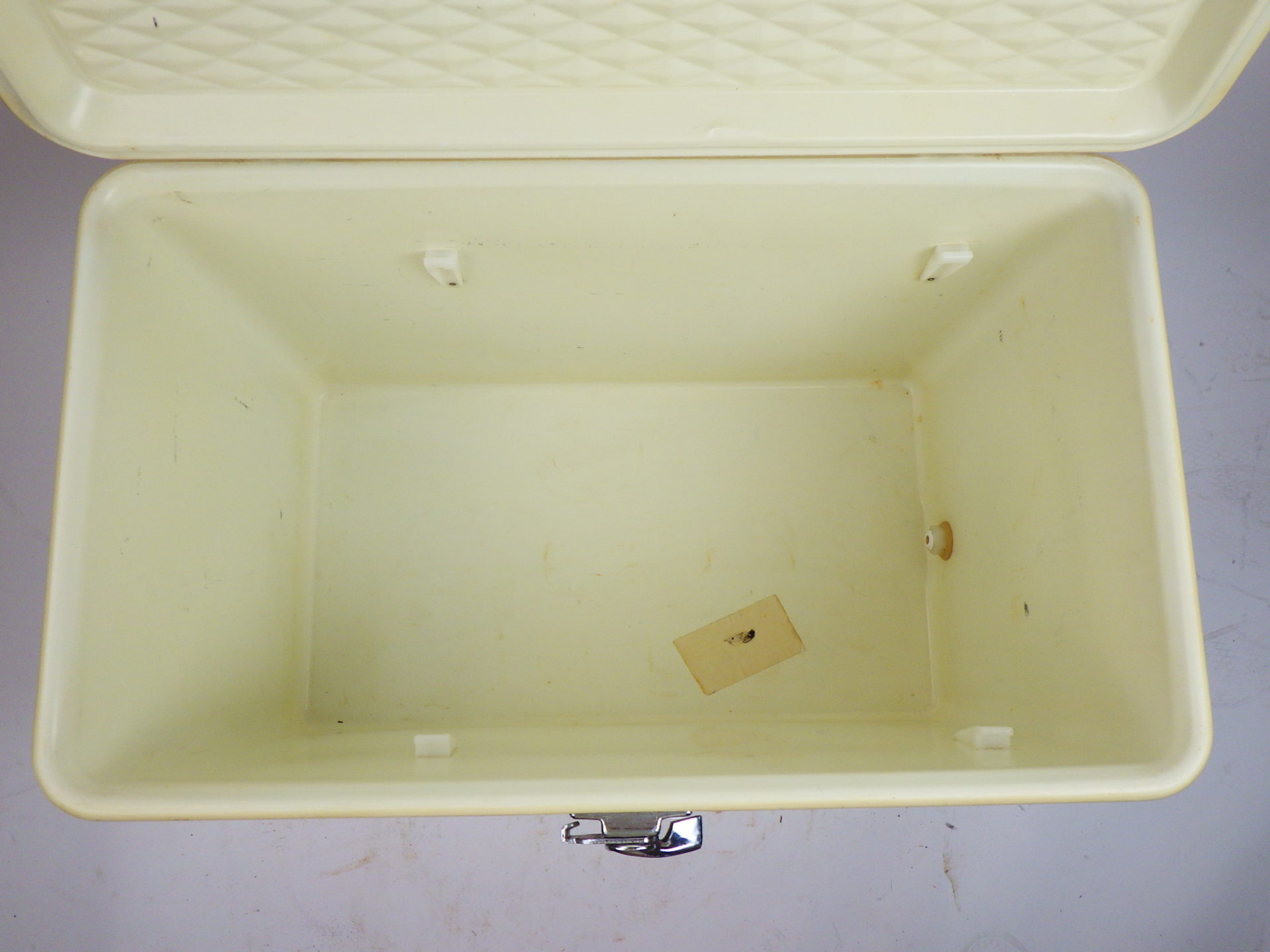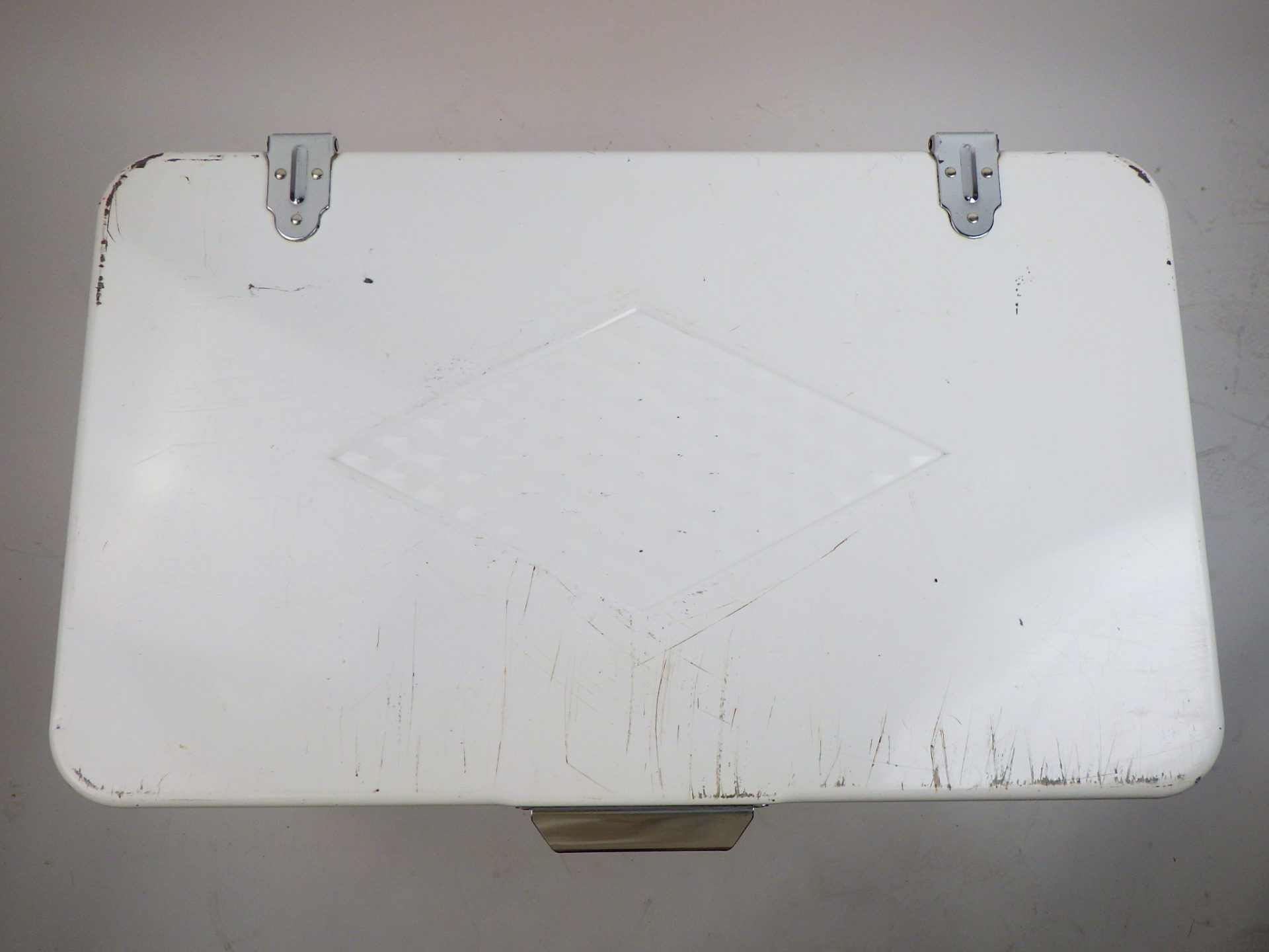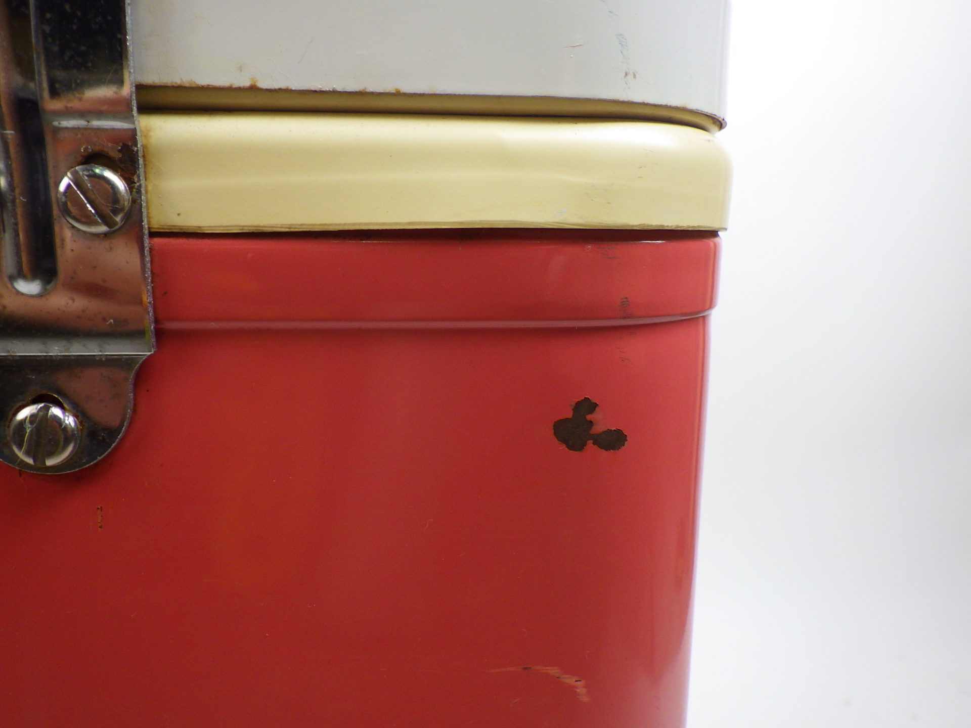 | アメリカで買い付けたコールマンのビンテージクーラーボックスです。 1960's~70's頃に製造されたクーラーボックスやジャグについている「ダイヤロゴ」が格好良いアイテムです。 また、持ち手部分には栓抜きが備えられていますよ。当時栓抜きを必要とした飲み物が多かった事が伺えますね。 |
