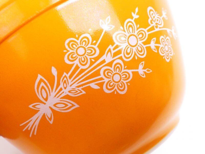 | バタフライゴールドはプリントが2パターンあり、こちらは花束になっているパターンです。 ボウルの他にもリフリッジレーターやマグ、シンデレラベイクサーブ&ストアなど、様々なアイテムが発売されているので、同一プリントで揃えてみるのも良いですね! |