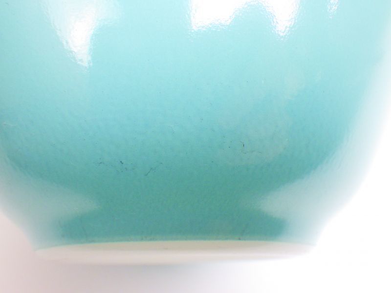 | ピンクと並んで1940年代後半〜50年代を代表するカラーです。 バタープリントのターコイズと同じ色なので、同時期の製造だと考えられています。 バタープリントと揃えてみても可愛いかもしれませんね! |