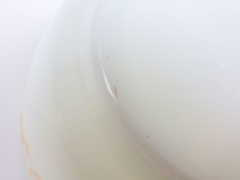 | condition | 内側に薄いかきまぜ痕、リム、ボトム接地部にわずかなスレ、着色がありますが、ワレやカケ等無くツヤもあります。 |