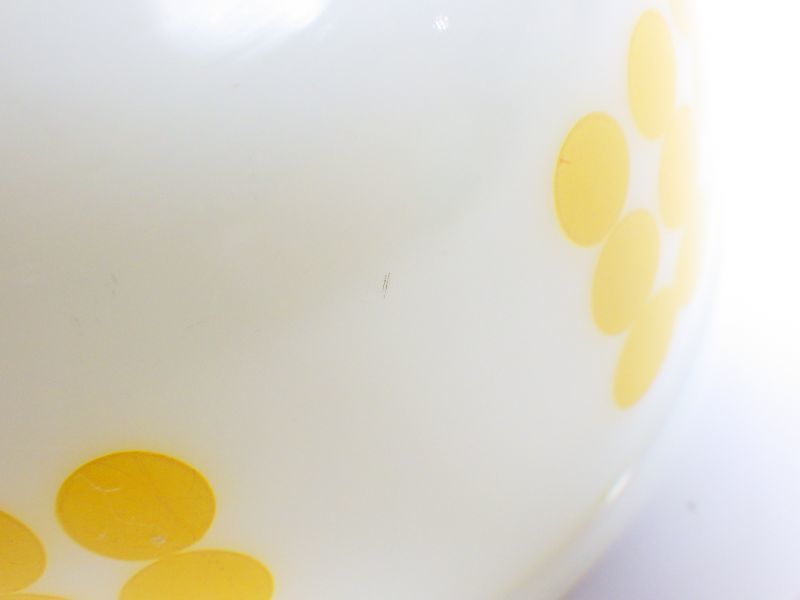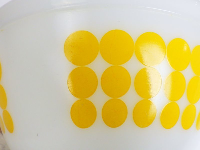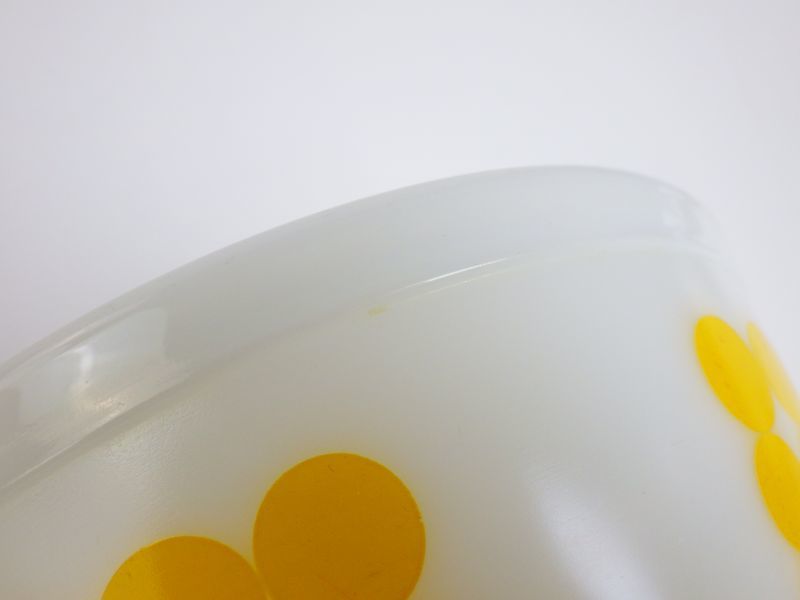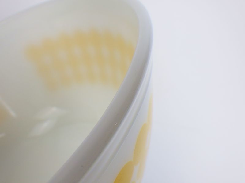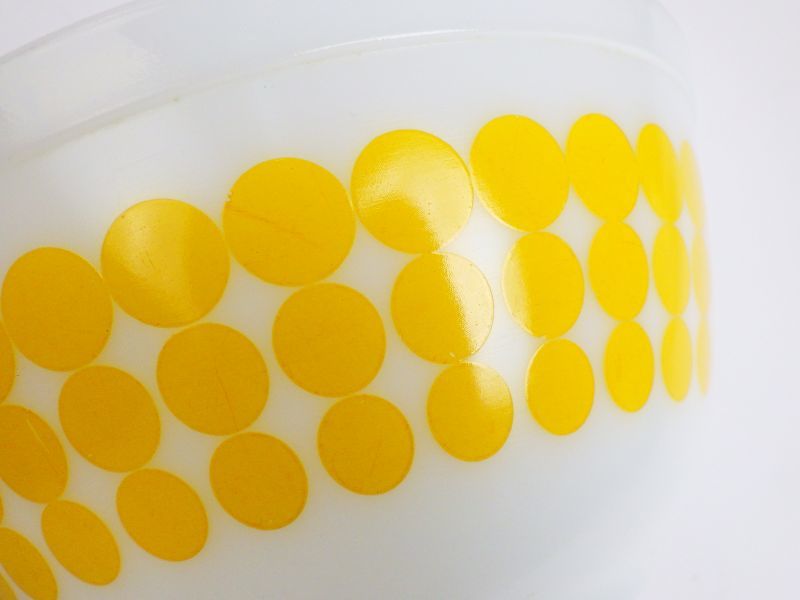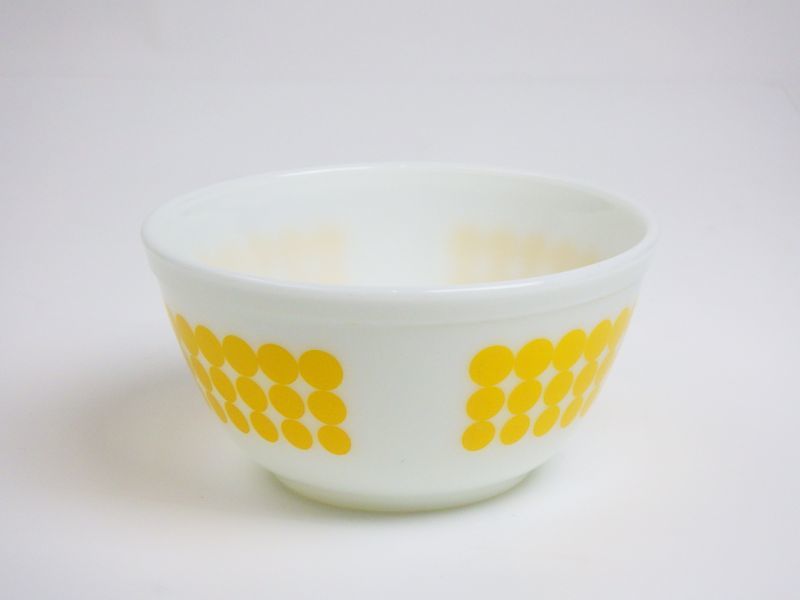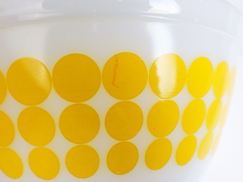 | 1960年代製、ニュードットシリーズのミキシングボウルです。 イエローの他に、オレンジ、ブルー、グリーンの四色展開です。 ポップで可愛らしく、食卓が華やかになりそうですね! |