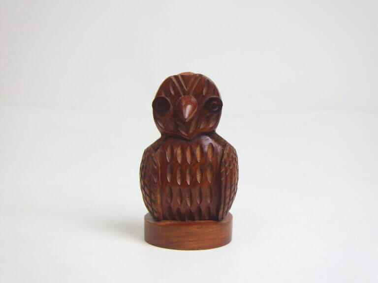 | ビンテージらしい風合いを持った手彫りのフクロウの置物です。 素朴で温かみのある風合いが、どんなお部屋にも合いそうですね。 |